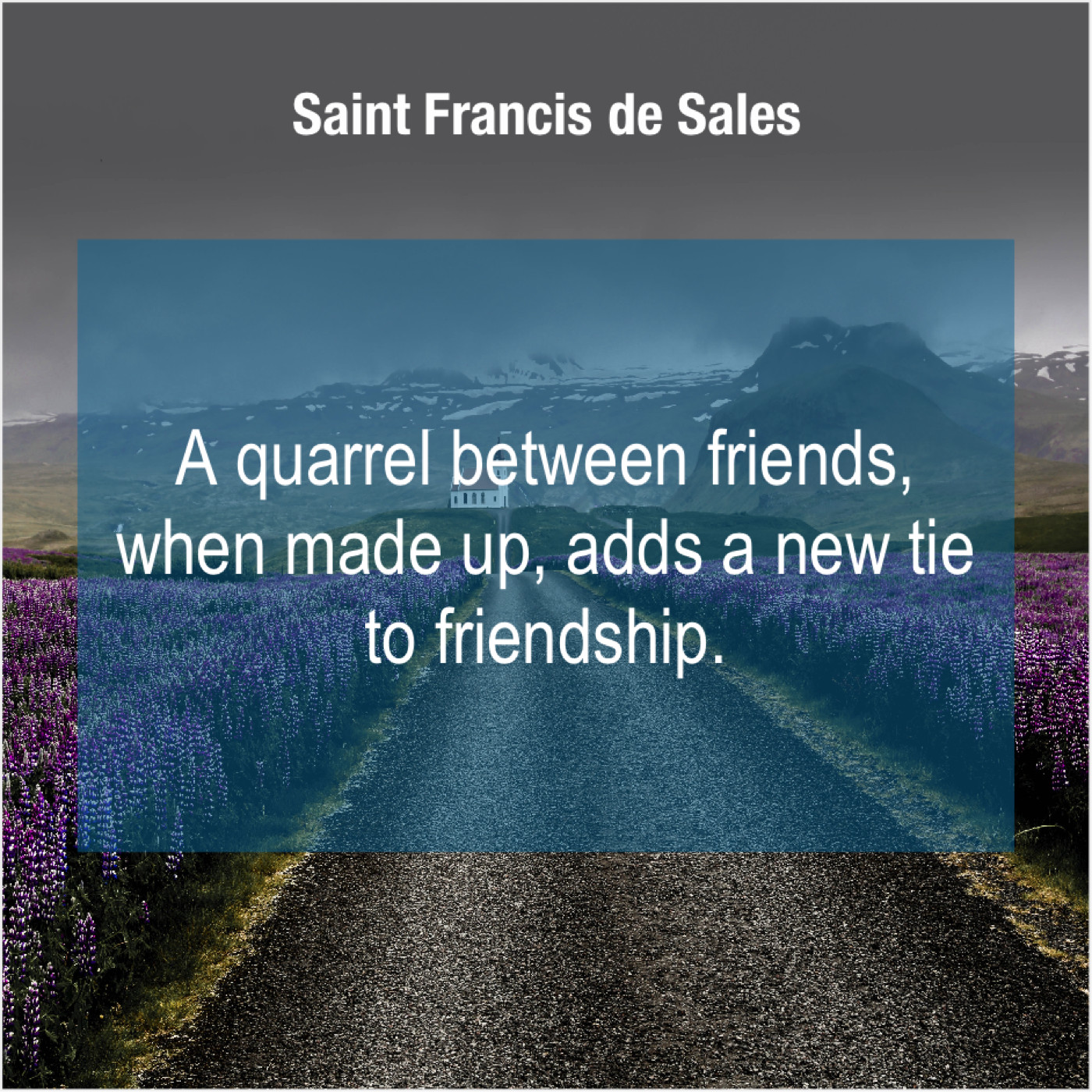 Saint Francis de Sales Saint Francis de Sales – A quarrel between friends, when… May 19, 2019 admin “A quarrel between friends, when made up, adds a new tie to friendship.”-Saint Francis de Sales