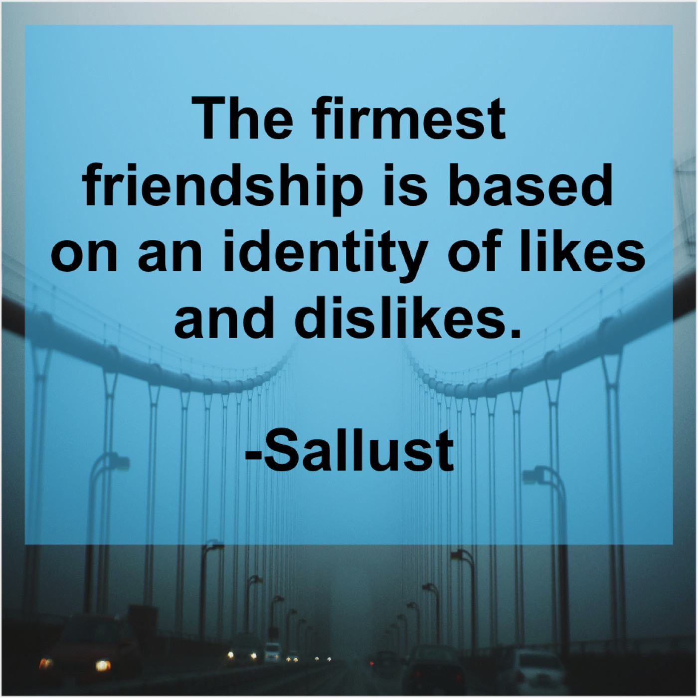 Sallust Sallust – The firmest friendship is based… August 19, 2019 admin “The firmest friendship is based on an identity of likes and dislikes.”-Sallust