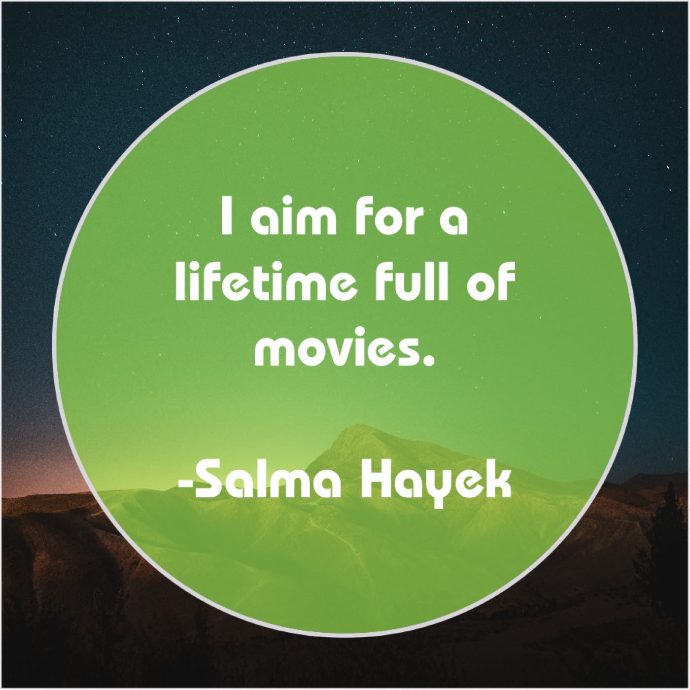 Salma Hayek Salma Hayek – I aim for a lifetime… January 5, 2019 admin “I aim for a lifetime full of movies.”-Salma Hayek