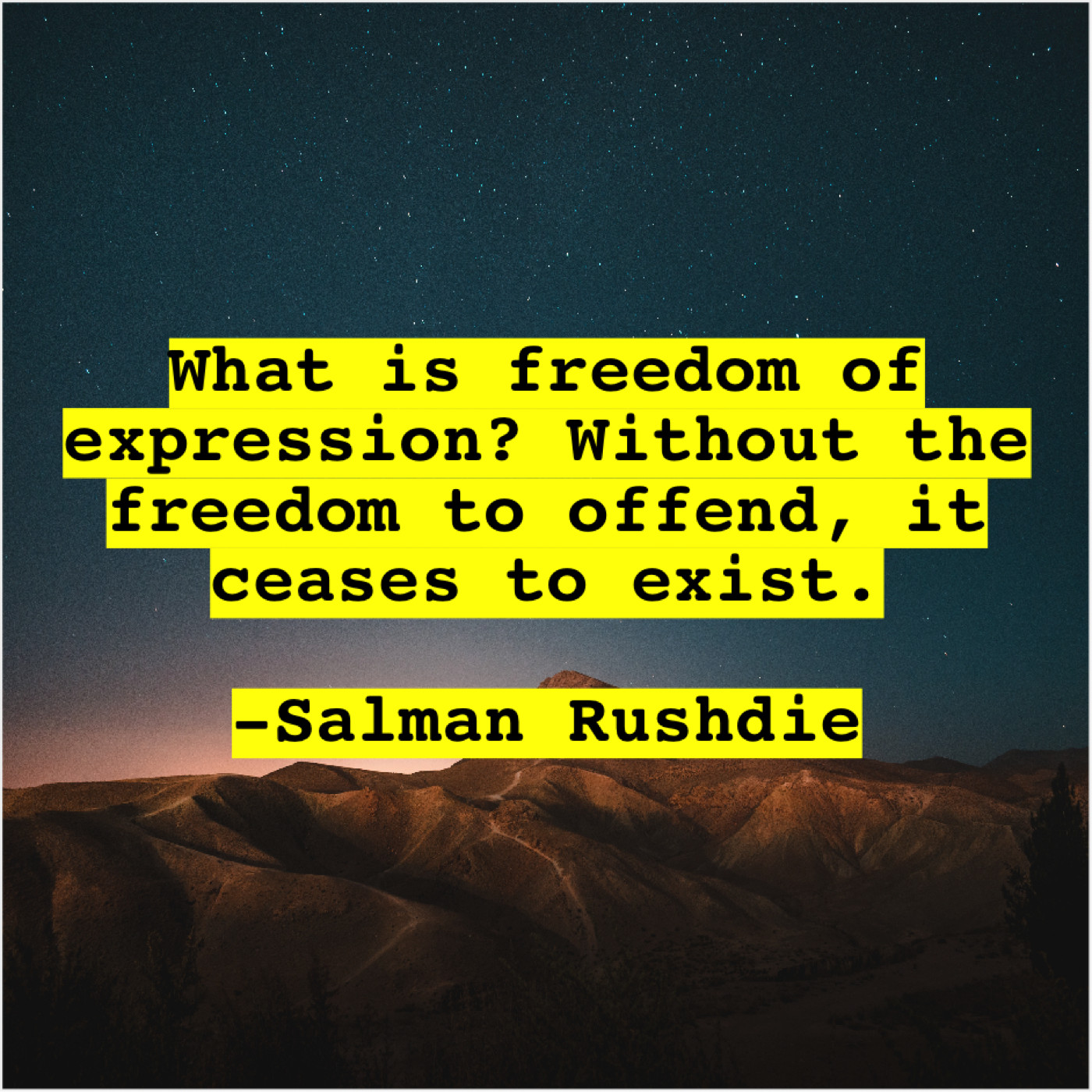 Salman Rushdie Salman Rushdie – What is freedom of expression… October 17, 2019 admin “What is freedom of expression? Without the freedom to offend, it ceases to exist.”-Salman Rushdie