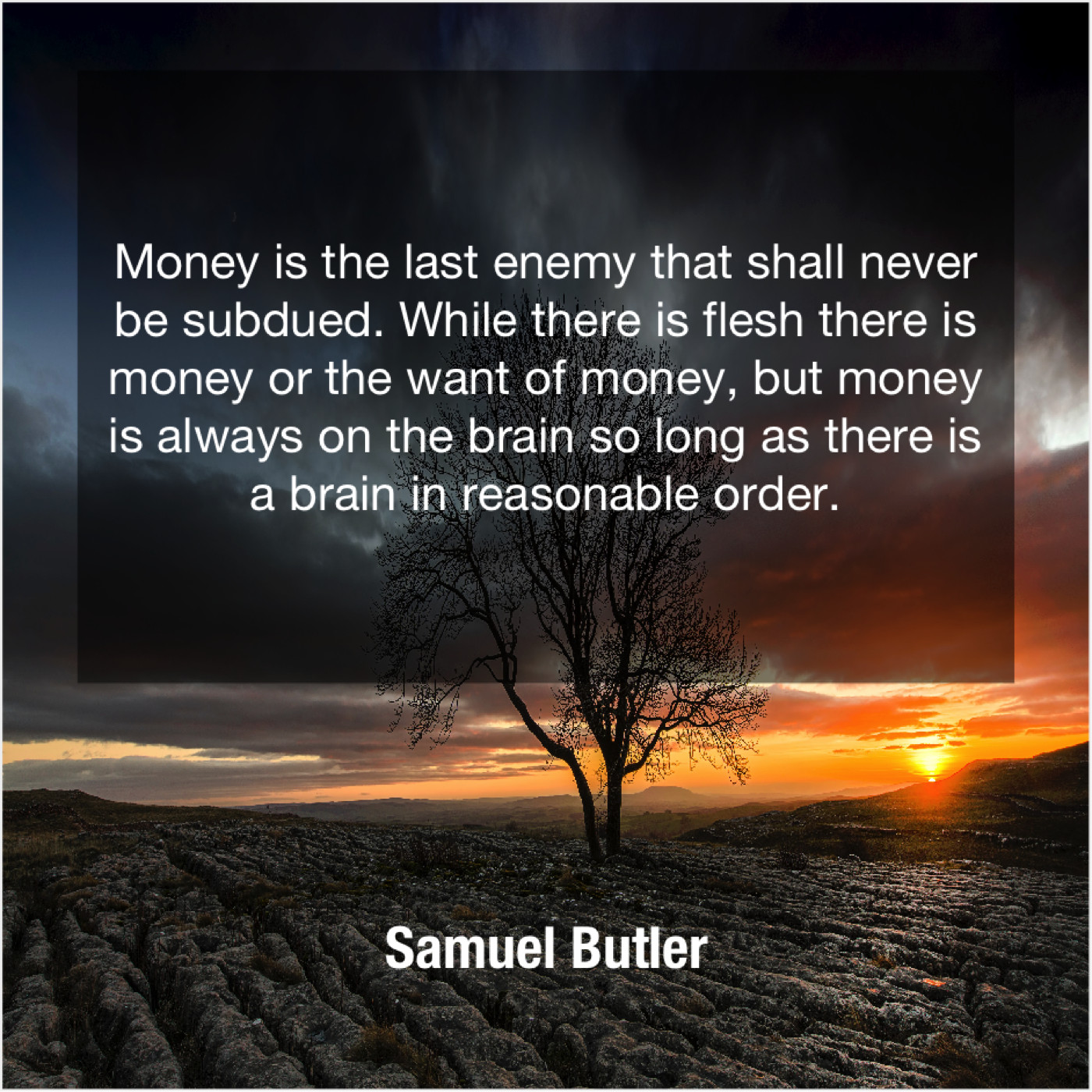 Samuel Butler Samuel Butler – Money is the last enemy… May 13, 2019 admin “Money is the last enemy that shall never be subdued. While there is flesh there is money or the want of money, but money is always on the brain so long as there is a brain in reasonable order.”-Samuel Butler