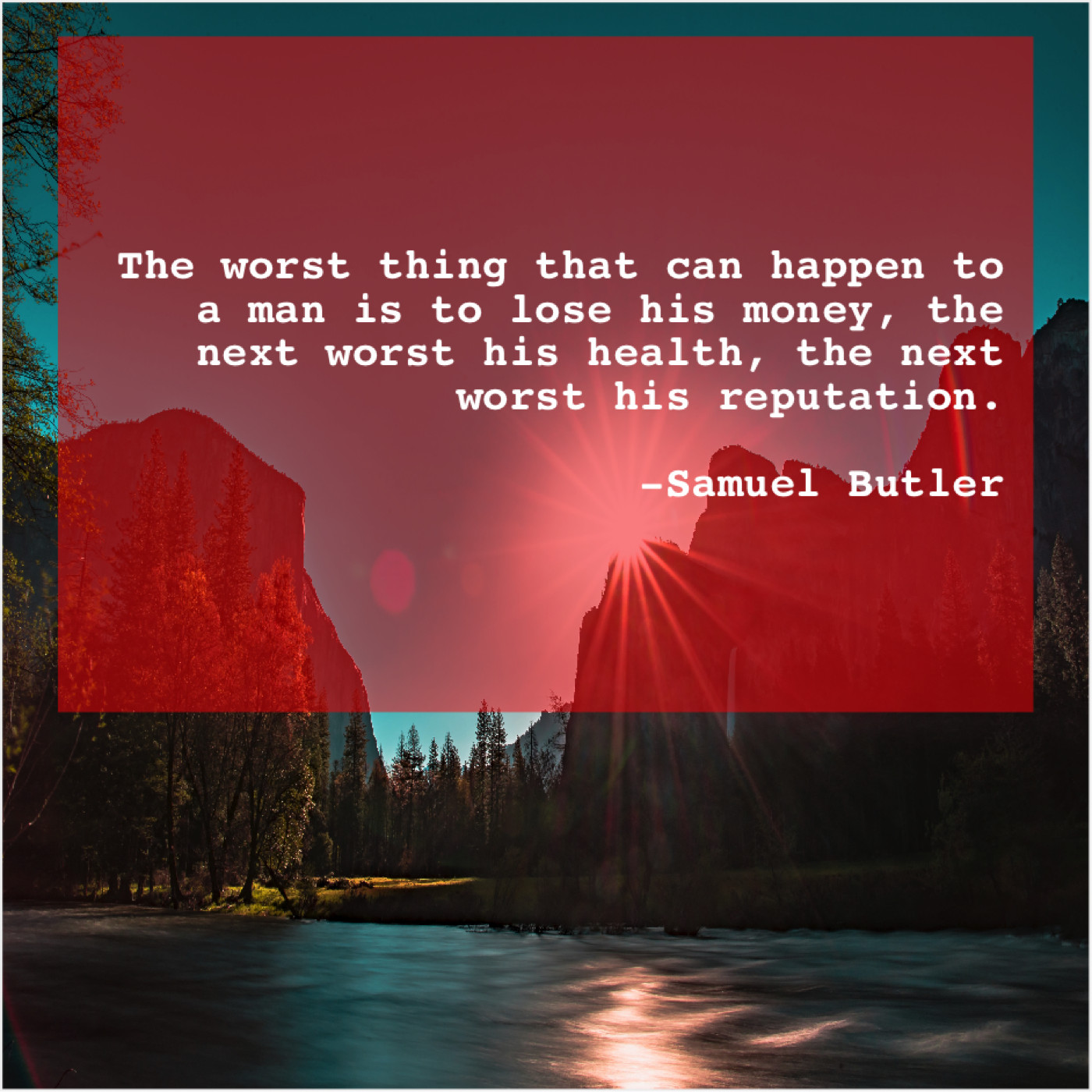 Samuel Butler Samuel Butler – The worst thing that can… January 16, 2019 admin “The worst thing that can happen to a man is to lose his money, the next worst his health, the next worst his reputation.”-Samuel Butler