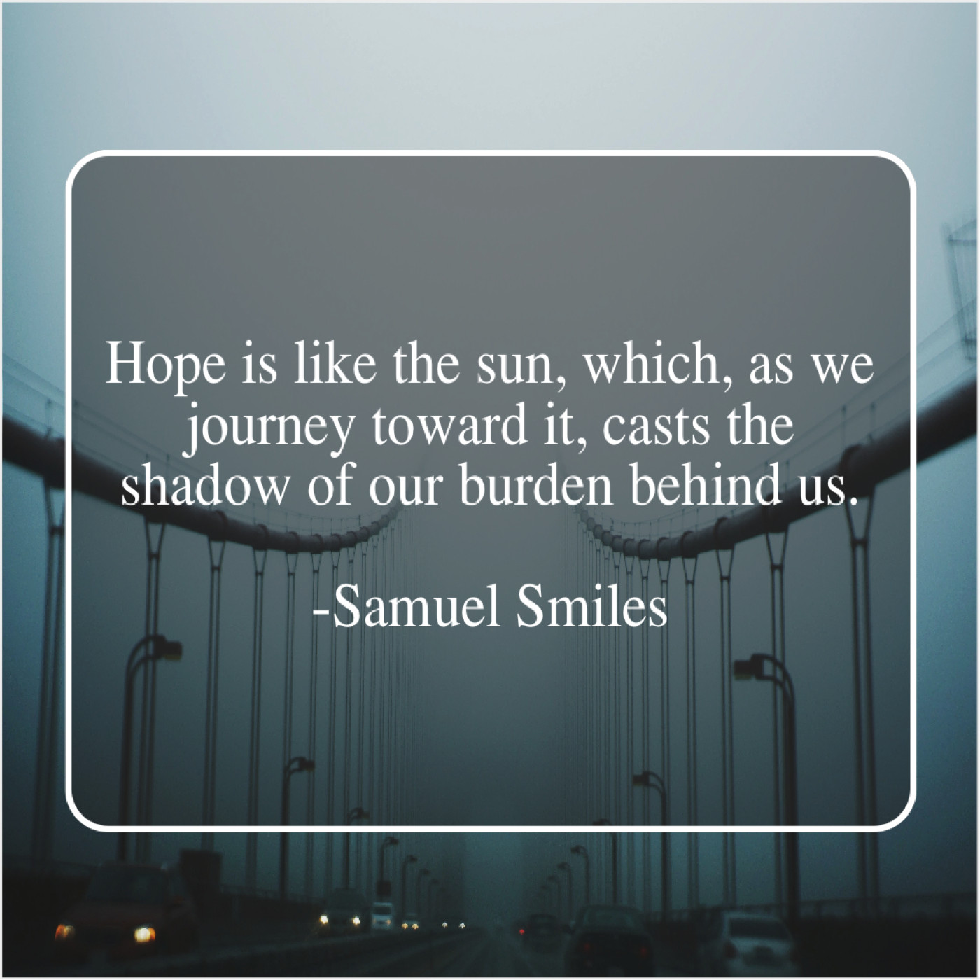 Samuel Smiles Samuel Smiles – Hope is like the sun… June 29, 2019 admin “Hope is like the sun, which, as we journey toward it, casts the shadow of our burden behind us.”-Samuel Smiles
