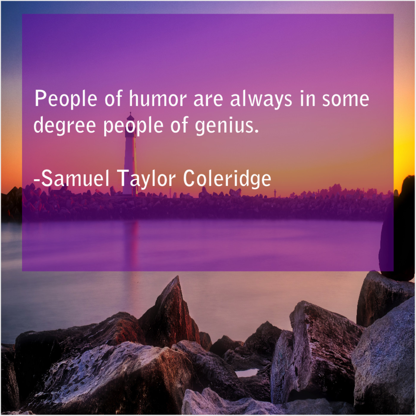 Samuel Taylor Coleridge Samuel Taylor Coleridge – People of humor are always… June 11, 2019 admin “People of humor are always in some degree people of genius.”-Samuel Taylor Coleridge
