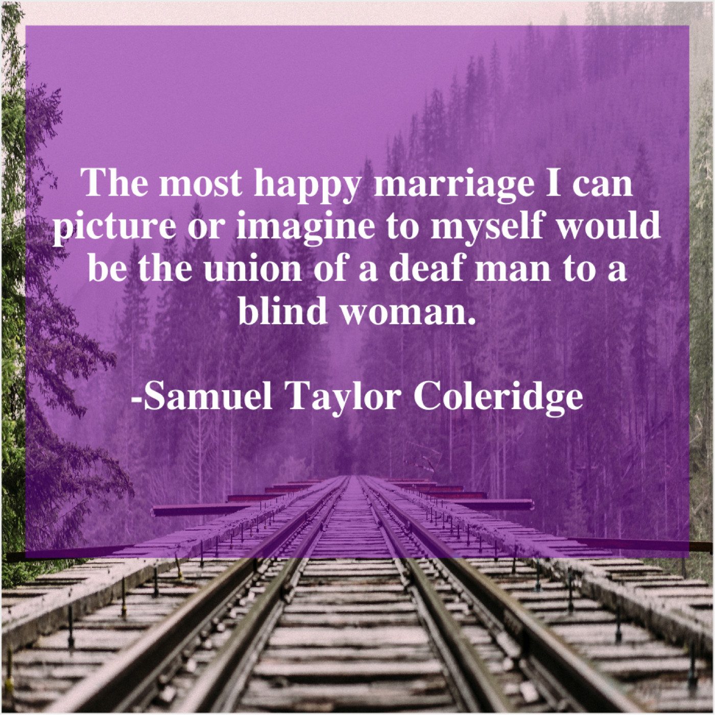 Samuel Taylor Coleridge Samuel Taylor Coleridge – The most happy marriage I… October 11, 2019 admin “The most happy marriage I can picture or imagine to myself would be the union of a deaf man to a blind woman.”-Samuel Taylor Coleridge