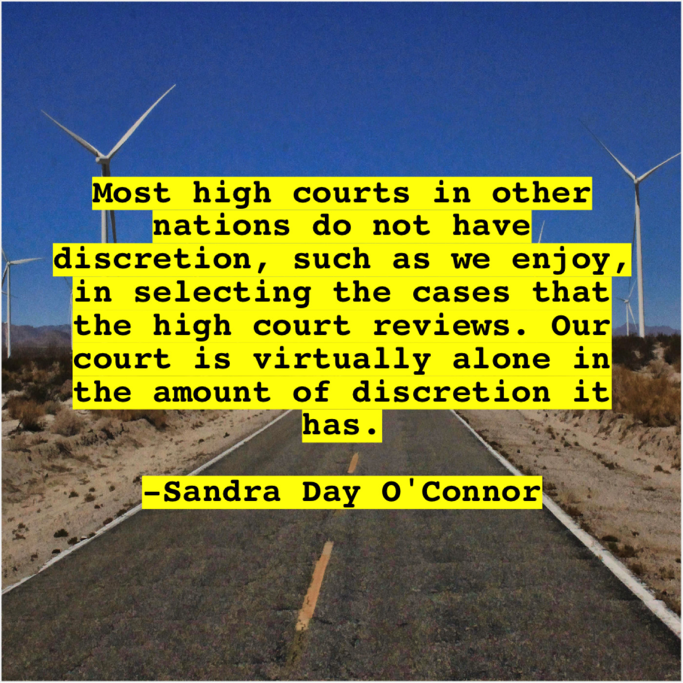 Sandra Day O'Connor Sandra Day O’Connor – Most high courts in other… May 13, 2019 admin “Most high courts in other nations do not have discretion, such as we enjoy, in selecting the cases that the high court reviews. Our court is virtually alone in the amount of discretion it has.”-Sandra Day O’Connor