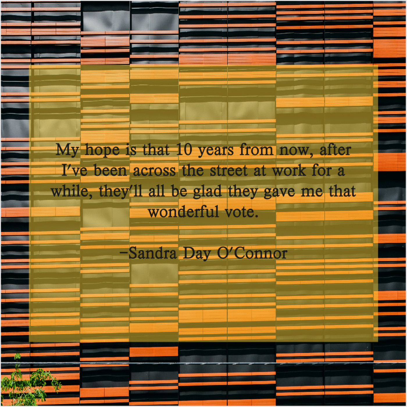 Sandra Day O'Connor Sandra Day O’Connor – My hope is that 10… May 14, 2019 admin “My hope is that 10 years from now, after I’ve been across the street at work for a while, they’ll all be glad they gave me that wonderful vote.”-Sandra Day O’Connor