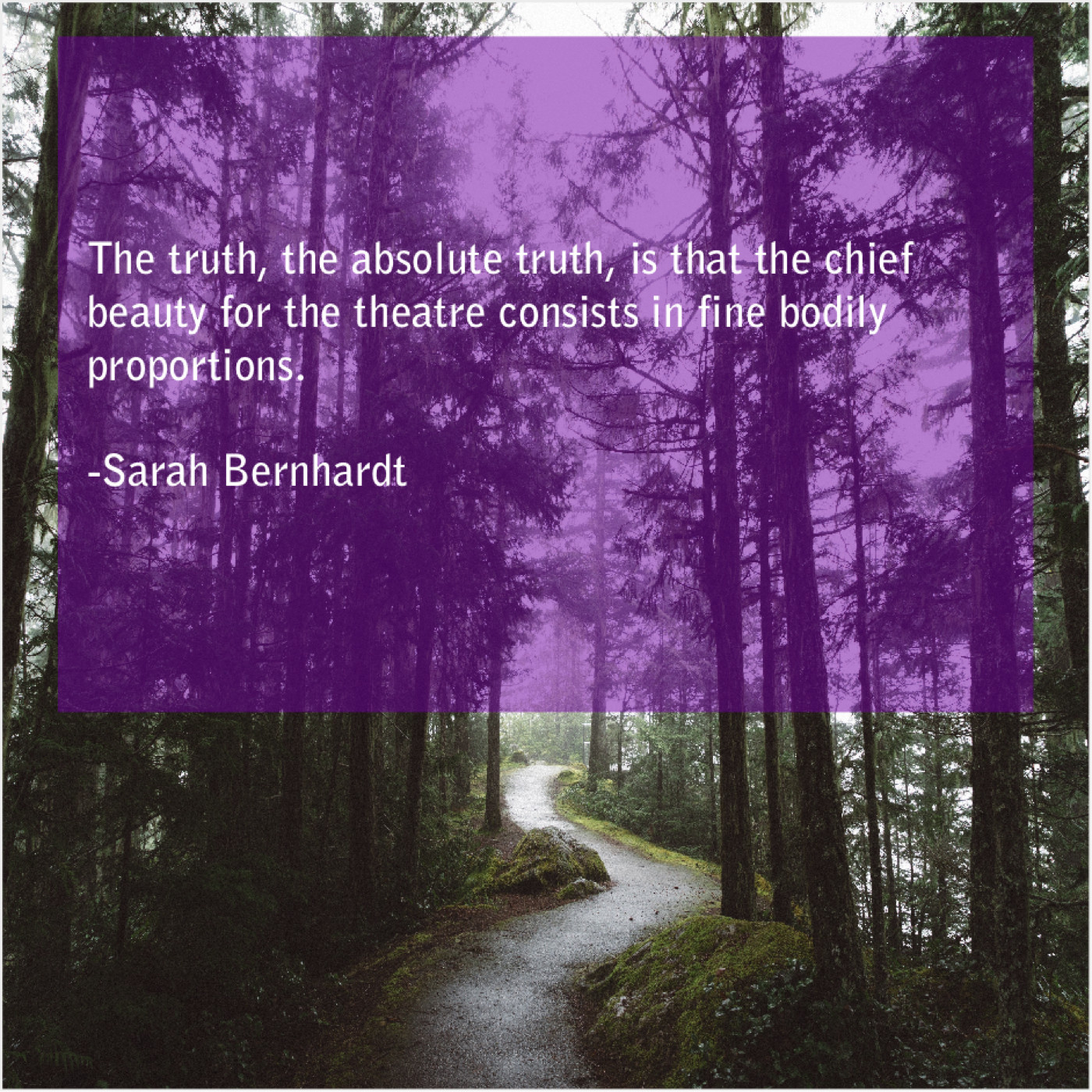 Sarah Bernhardt Sarah Bernhardt – The truth, the absolute truth… March 9, 2019 admin “The truth, the absolute truth, is that the chief beauty for the theatre consists in fine bodily proportions.”-Sarah Bernhardt