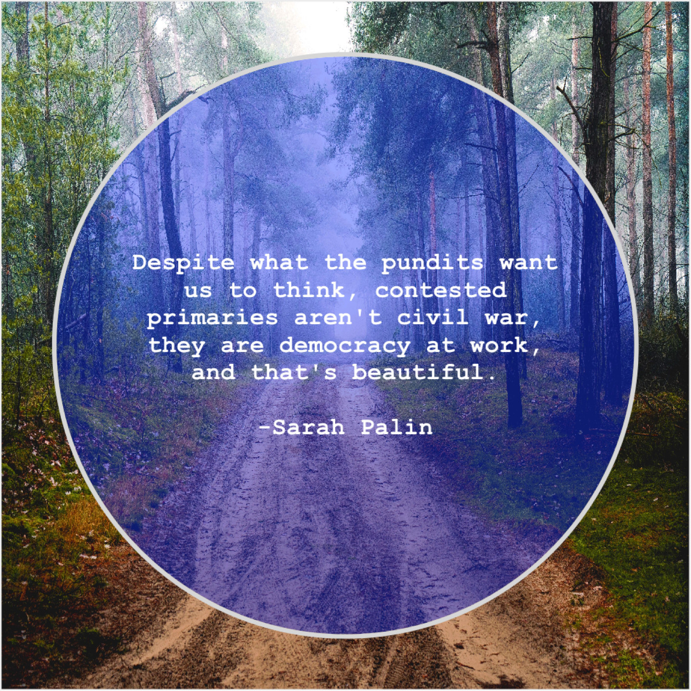 Sarah Palin Sarah Palin – Despite what the pundits want… May 13, 2019 admin “Despite what the pundits want us to think, contested primaries aren’t civil war, they are democracy at work, and that’s beautiful.”-Sarah Palin