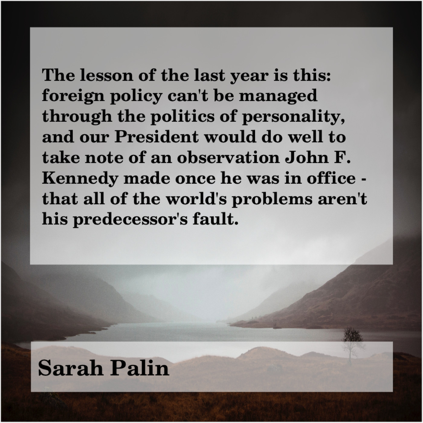 “The lesson of the last year is this: foreign policy can’t be managed through the politics of personality, and our President would do well to take note of an observation John F. Kennedy made once he was in office – that all of the world’s problems aren’t his predecessor’s fault.”