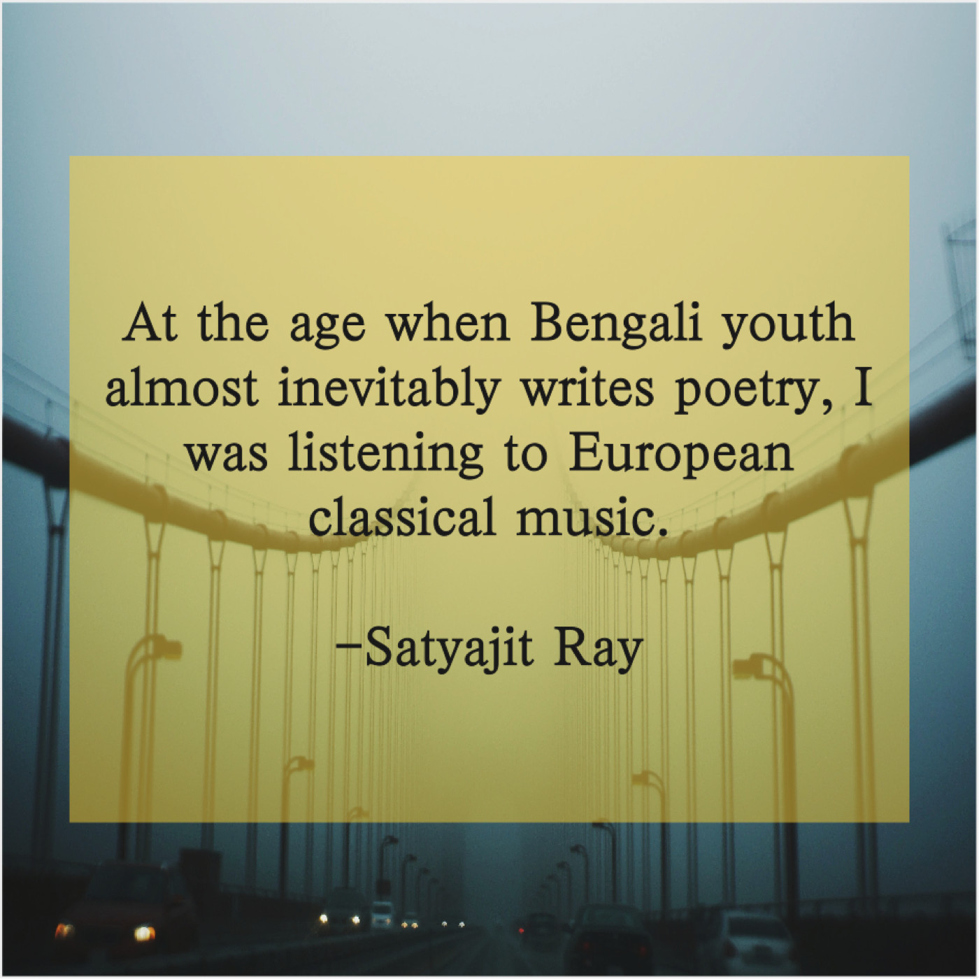 Satyajit Ray Satyajit Ray – At the age when Bengali… October 18, 2019 admin “At the age when Bengali youth almost inevitably writes poetry, I was listening to European classical music.”-Satyajit Ray