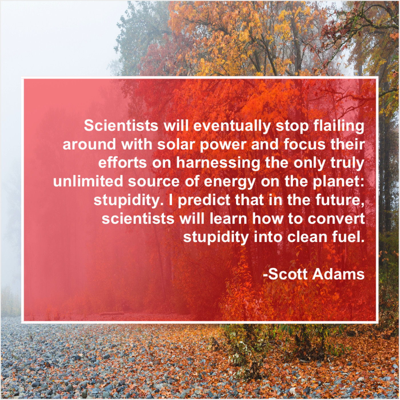 “Scientists will eventually stop flailing around with solar power and focus their efforts on harnessing the only truly unlimited source of energy on the planet: stupidity. I predict that in the future, scientists will learn how to convert stupidity into clean fuel.”