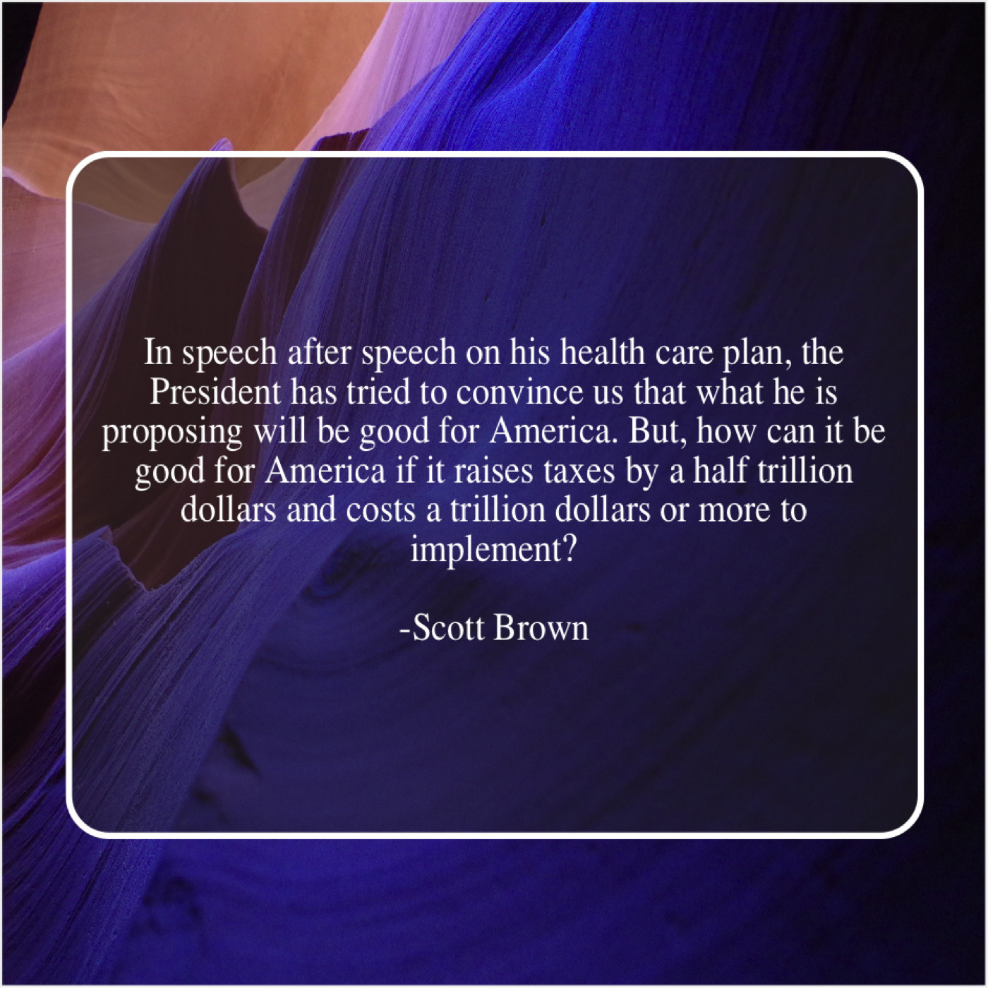 “In speech after speech on his health care plan, the President has tried to convince us that what he is proposing will be good for America. But, how can it be good for America if it raises taxes by a half trillion dollars and costs a trillion dollars or more to implement?”