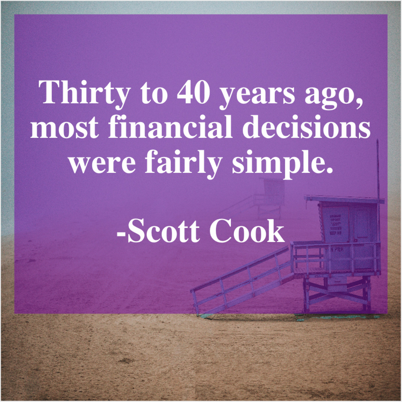 Scott Cook Scott Cook – Thirty to 40 years ago… March 26, 2019 admin “Thirty to 40 years ago, most financial decisions were fairly simple.”-Scott Cook