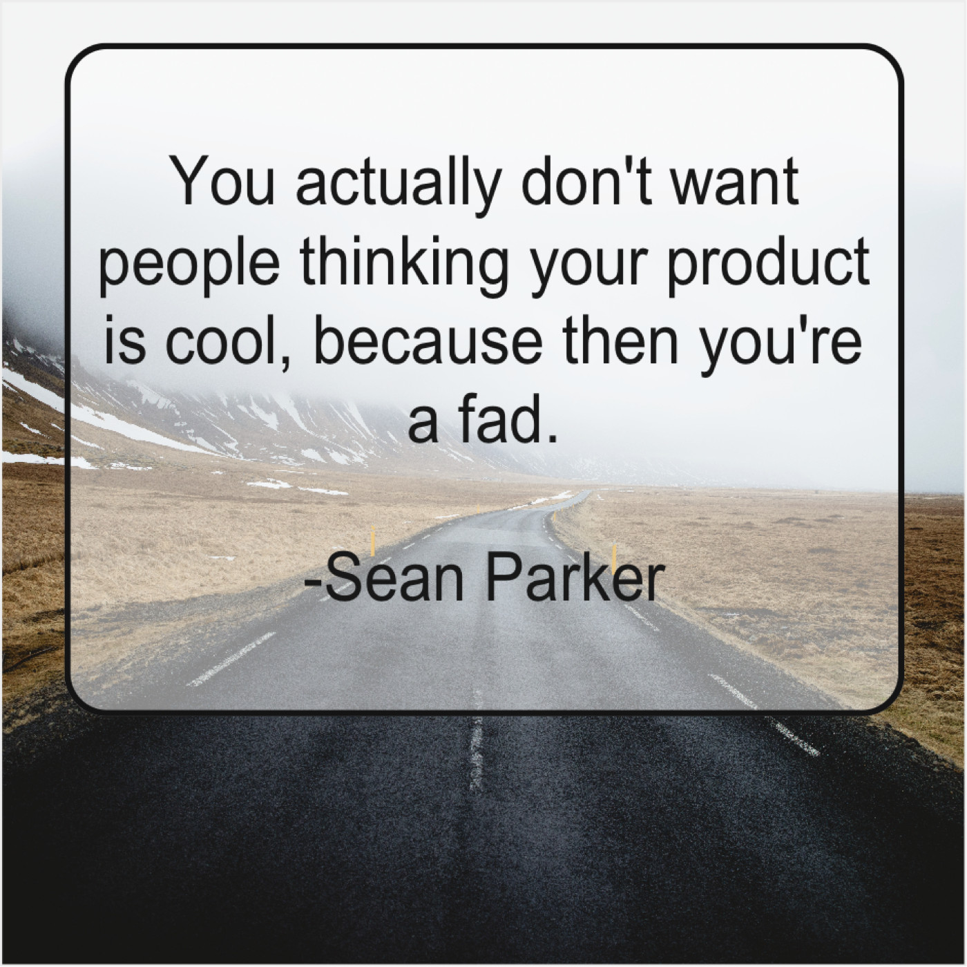 Sean Parker Sean Parker – You actually don’t want people… February 9, 2019 admin “You actually don’t want people thinking your product is cool, because then you’re a fad.”-Sean Parker