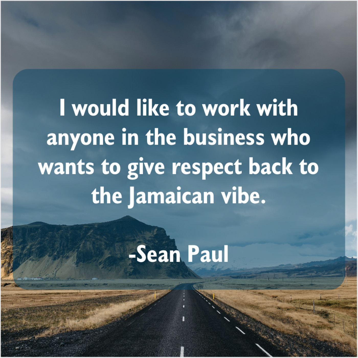Sean Paul Sean Paul – I would like to work… October 10, 2019 admin “I would like to work with anyone in the business who wants to give respect back to the Jamaican vibe.”-Sean Paul