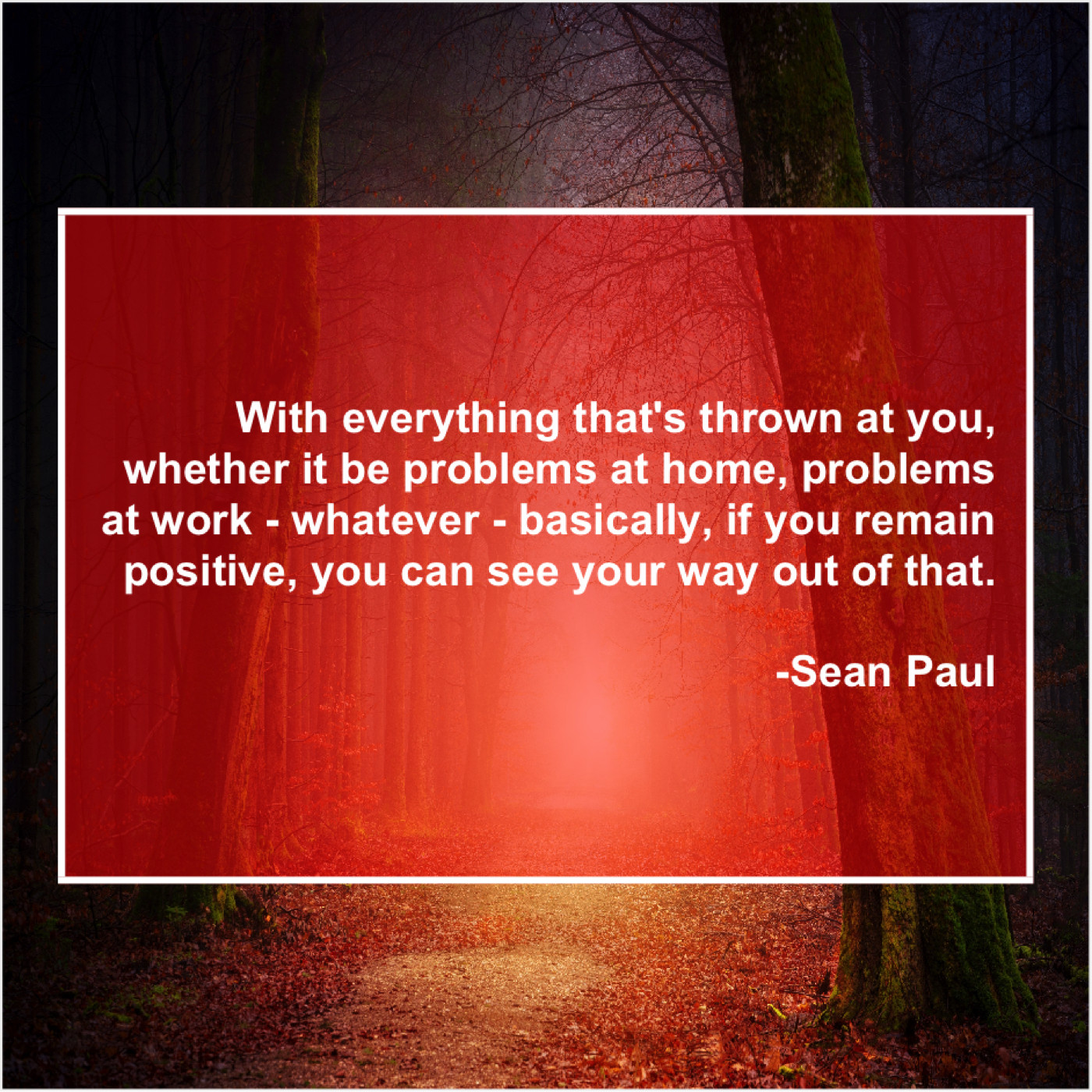Sean Paul Sean Paul – With everything that’s thrown at… September 26, 2019 admin “With everything that’s thrown at you, whether it be problems at home, problems at work – whatever – basically, if you remain positive, you can see your way out of that.”-Sean Paul