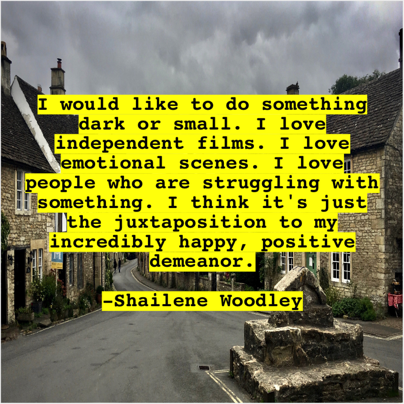 Shailene Woodley Shailene Woodley – I would like to do… July 16, 2019 admin “I would like to do something dark or small. I love independent films. I love emotional scenes. I love people who are struggling with something. I think it’s just the juxtaposition to my incredibly happy, positive demeanor.”-Shailene Woodley