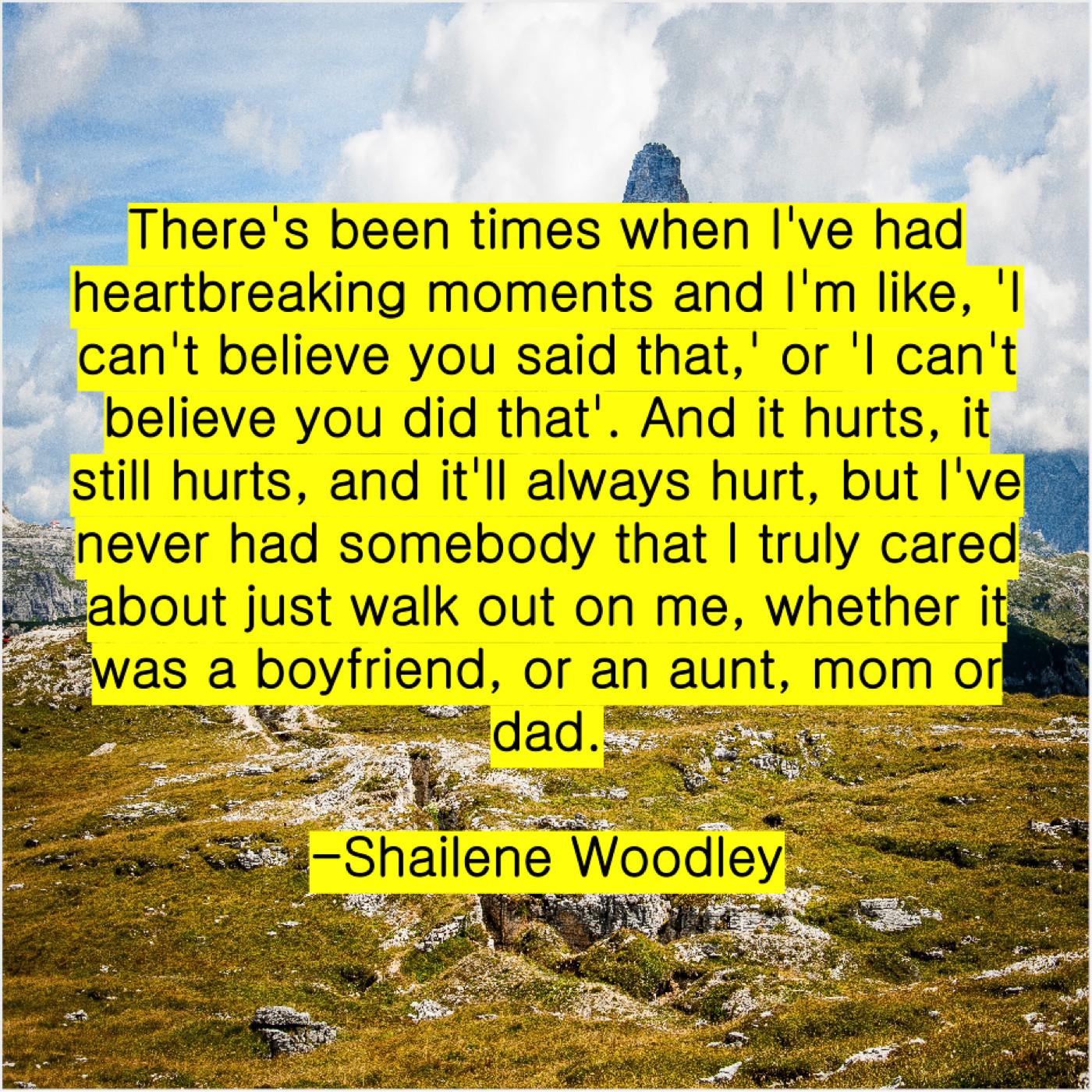“There’s been times when I’ve had heartbreaking moments and I’m like, ‘I can’t believe you said that,’ or ‘I can’t believe you did that’. And it hurts, it still hurts, and it’ll always hurt, but I’ve never had somebody that I truly cared about just walk out on me, whether it was a boyfriend, or an aunt, mom or dad.”