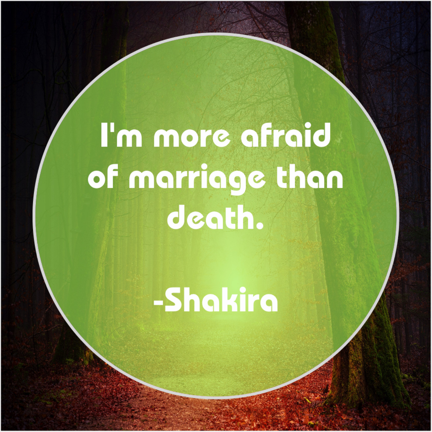 Shakira Shakira – I’m more afraid of marriage… May 2, 2019 admin “I’m more afraid of marriage than death.”-Shakira