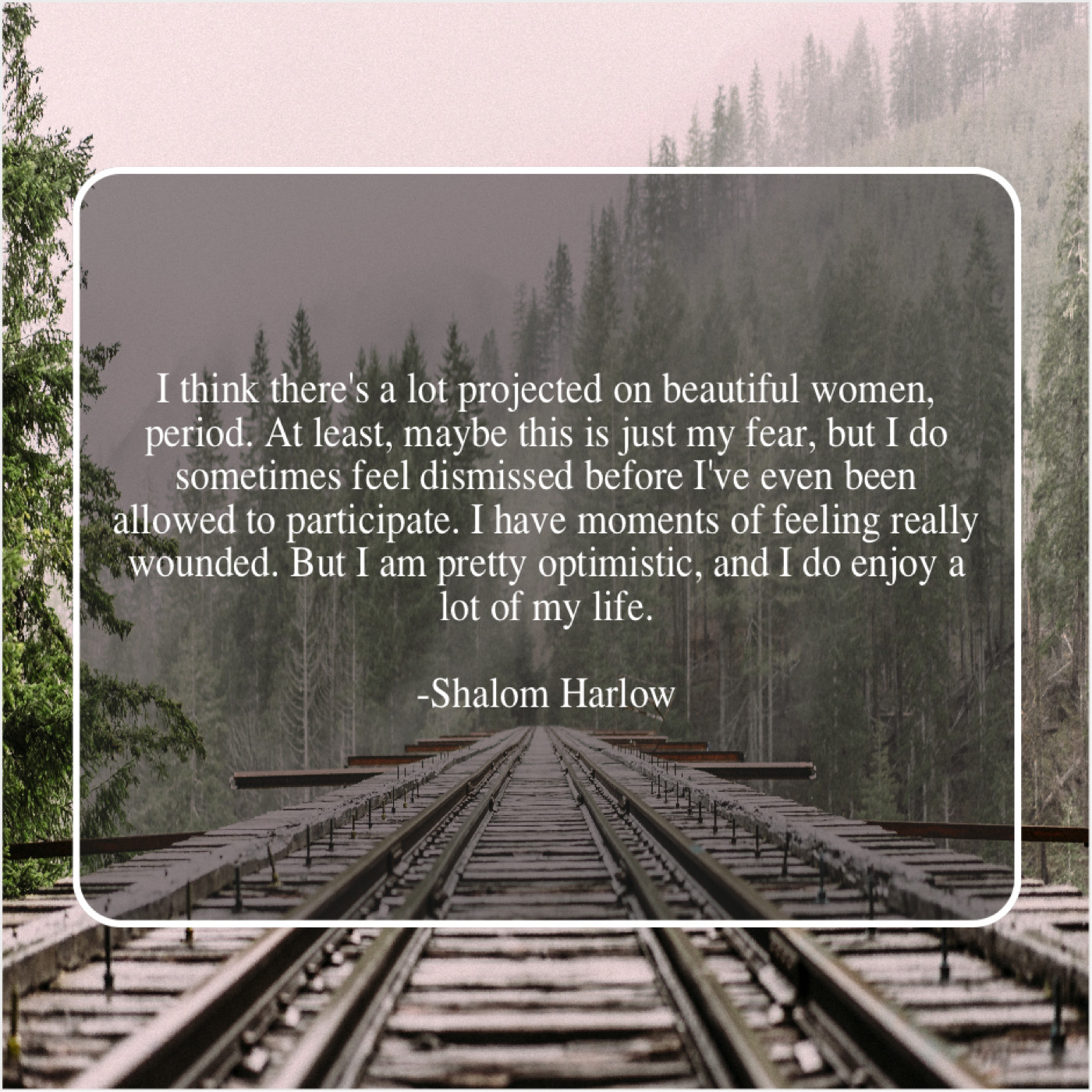 “I think there’s a lot projected on beautiful women, period. At least, maybe this is just my fear, but I do sometimes feel dismissed before I’ve even been allowed to participate. I have moments of feeling really wounded. But I am pretty optimistic, and I do enjoy a lot of my life.”