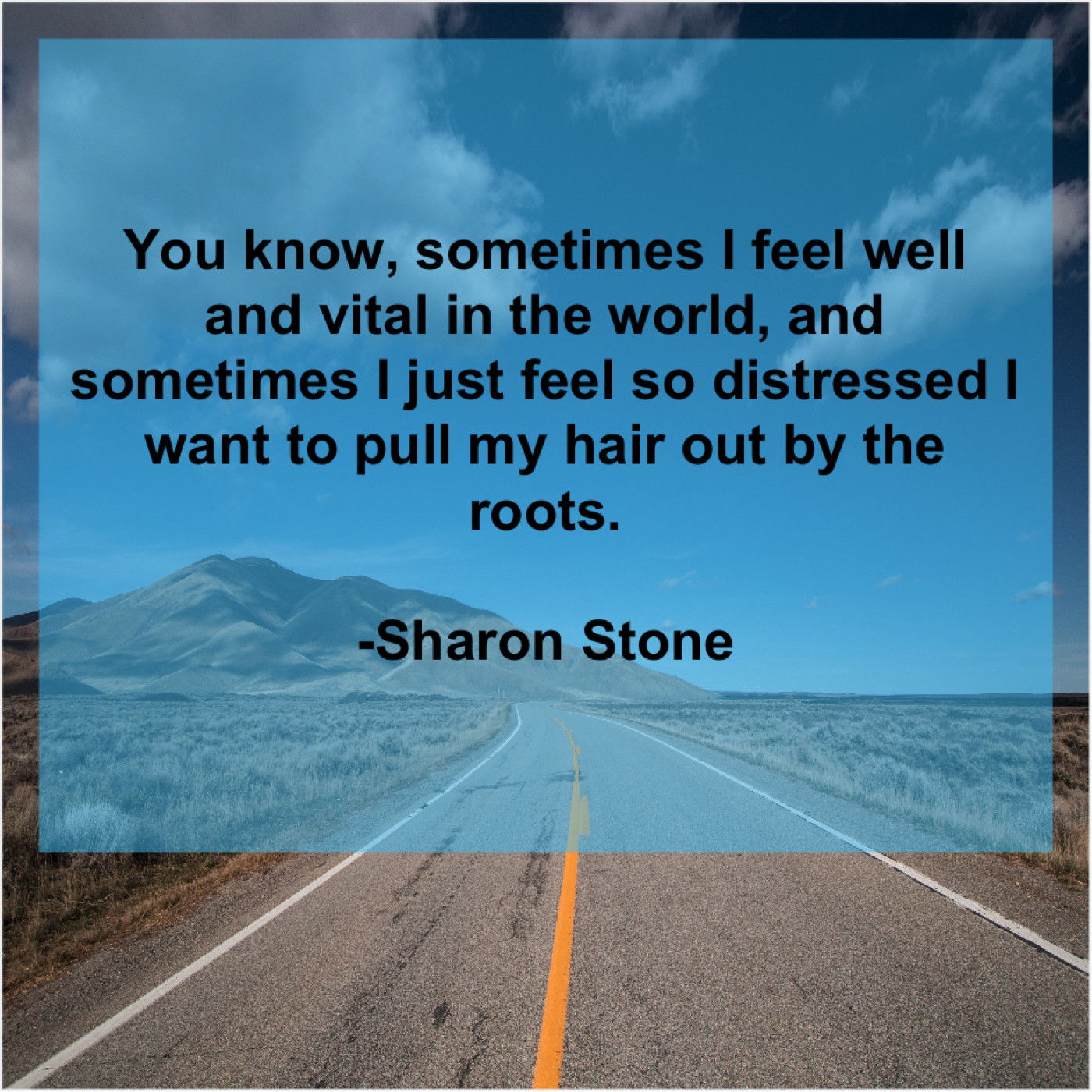 Sharon Stone Sharon Stone – You know, sometimes I feel… January 12, 2019 admin “You know, sometimes I feel well and vital in the world, and sometimes I just feel so distressed I want to pull my hair out by the roots.”-Sharon Stone