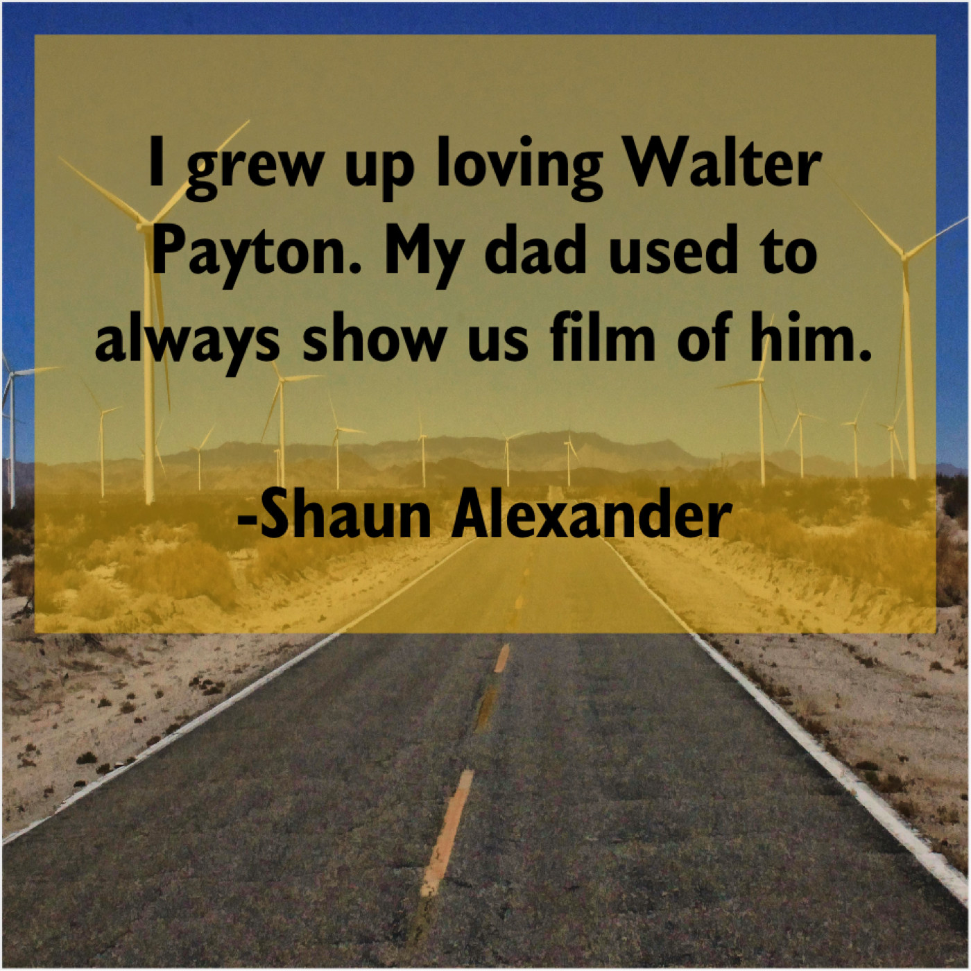 Shaun Alexander Shaun Alexander – I grew up loving Walter… July 31, 2019 admin “I grew up loving Walter Payton. My dad used to always show us film of him.”-Shaun Alexander