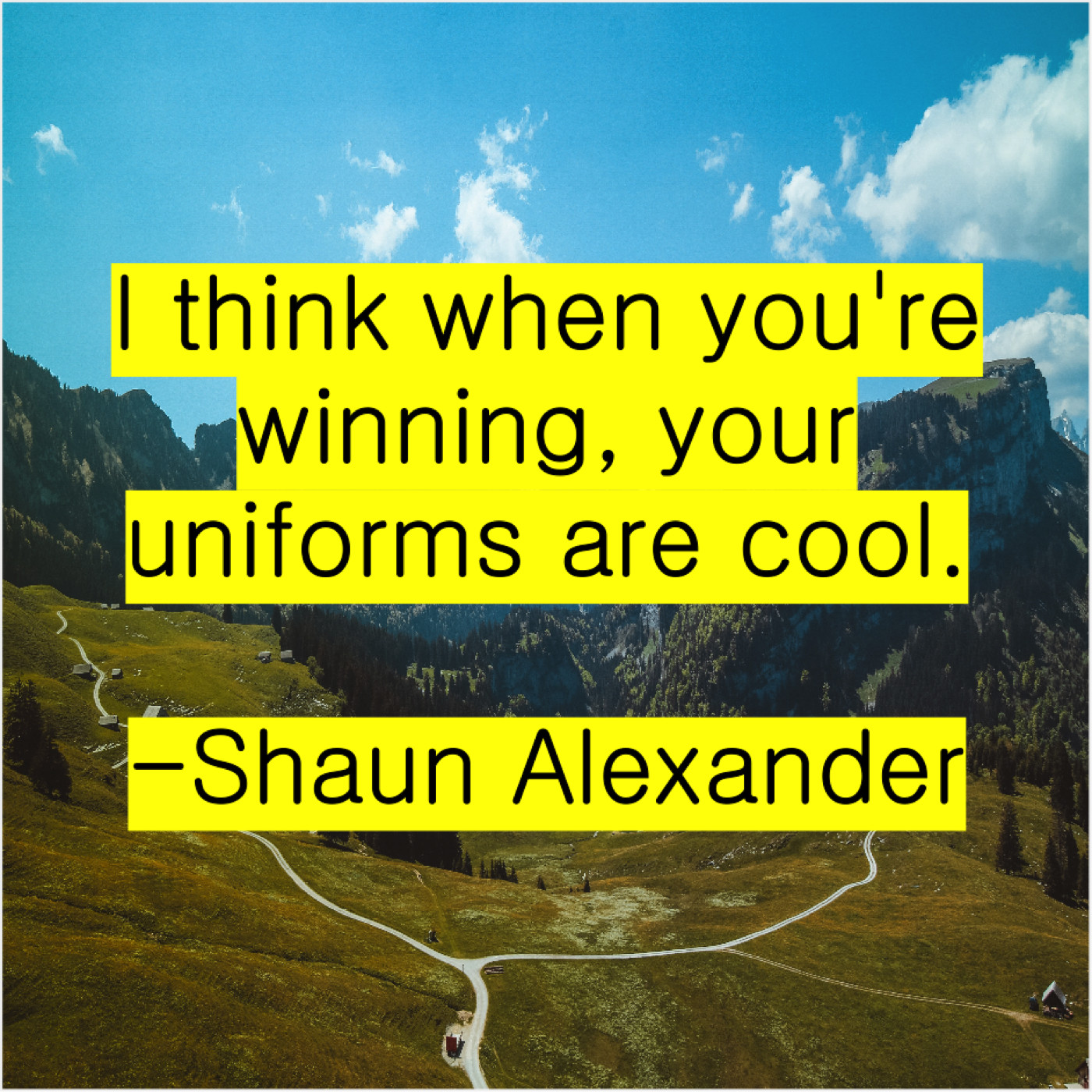 Shaun Alexander Shaun Alexander – I think when you’re winning… October 17, 2019 admin “I think when you’re winning, your uniforms are cool.”-Shaun Alexander