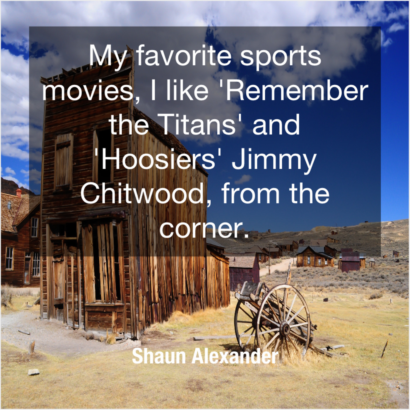 Shaun Alexander Shaun Alexander – My favorite sports movies, I… July 13, 2019 admin “My favorite sports movies, I like ‘Remember the Titans’ and ‘Hoosiers’ Jimmy Chitwood, from the corner.”-Shaun Alexander