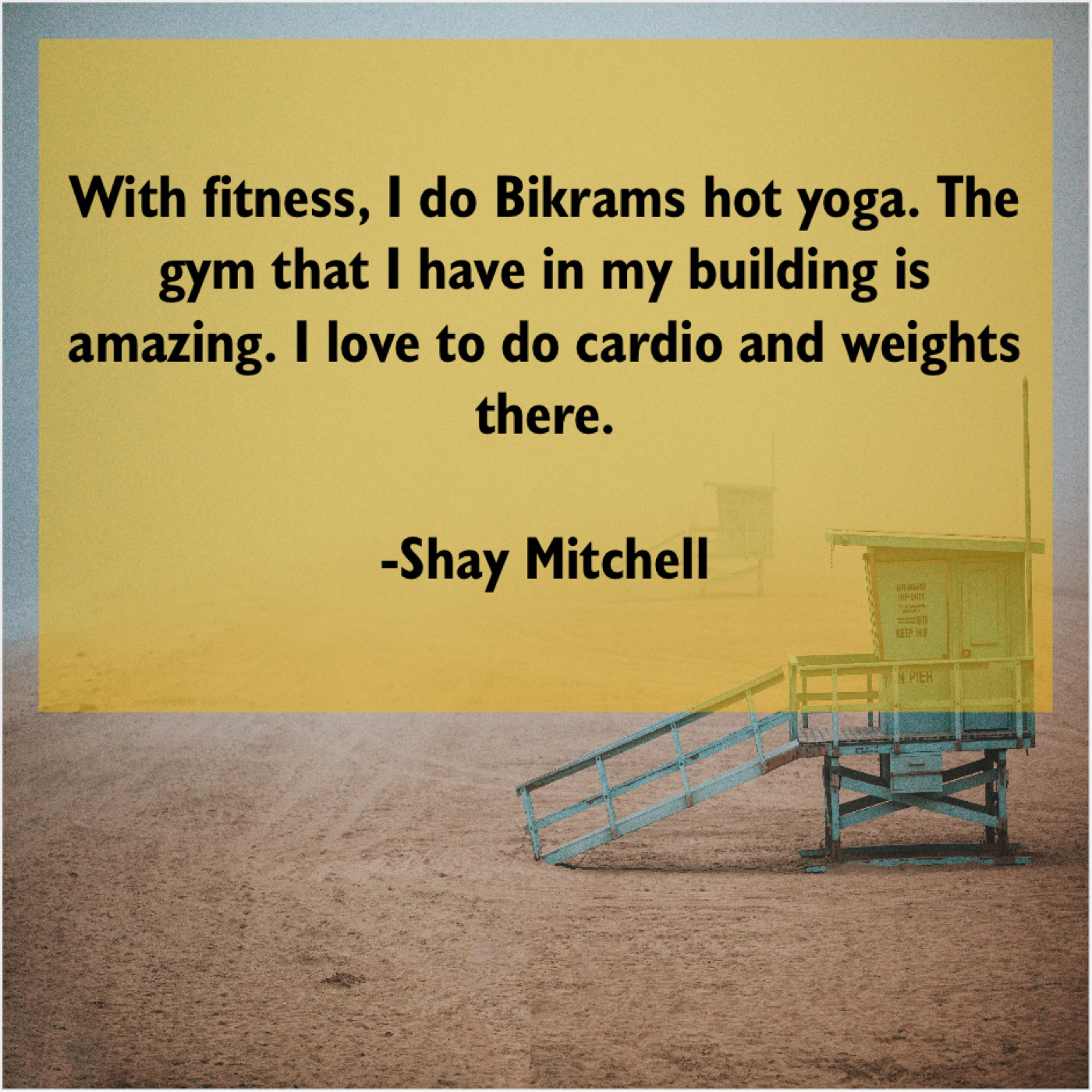 Shay Mitchell Shay Mitchell – With fitness, I do Bikrams… January 21, 2019 admin “With fitness, I do Bikrams hot yoga. The gym that I have in my building is amazing. I love to do cardio and weights there.”-Shay Mitchell