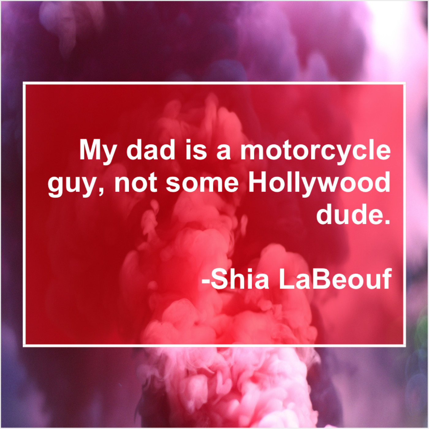 Shia LaBeouf Shia LaBeouf – My dad is a motorcycle… January 23, 2019 admin “My dad is a motorcycle guy, not some Hollywood dude.”-Shia LaBeouf