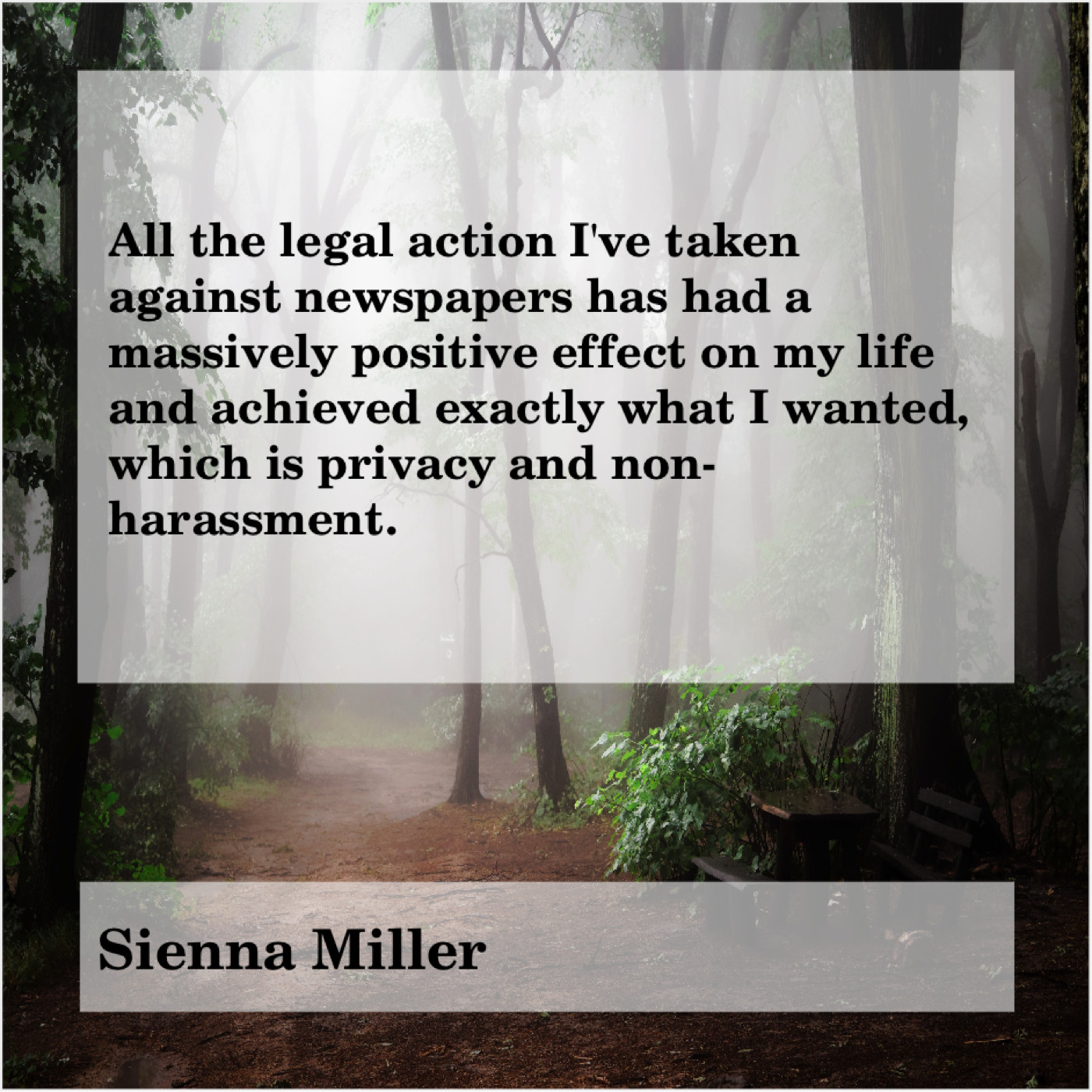 Sienna Miller Sienna Miller – All the legal action I’ve… February 26, 2019 admin “All the legal action I’ve taken against newspapers has had a massively positive effect on my life and achieved exactly what I wanted, which is privacy and non-harassment.”-Sienna Miller