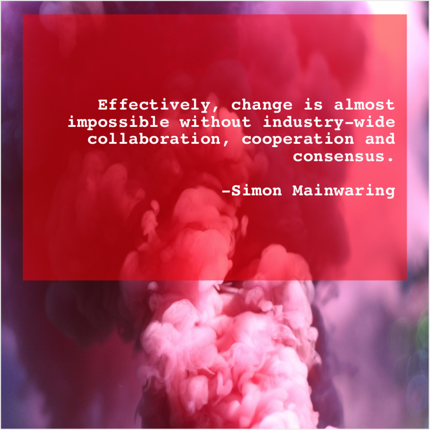 Simon Mainwaring Simon Mainwaring – Effectively, change is almost impossible… September 12, 2019 admin “Effectively, change is almost impossible without industry-wide collaboration, cooperation and consensus.”-Simon Mainwaring