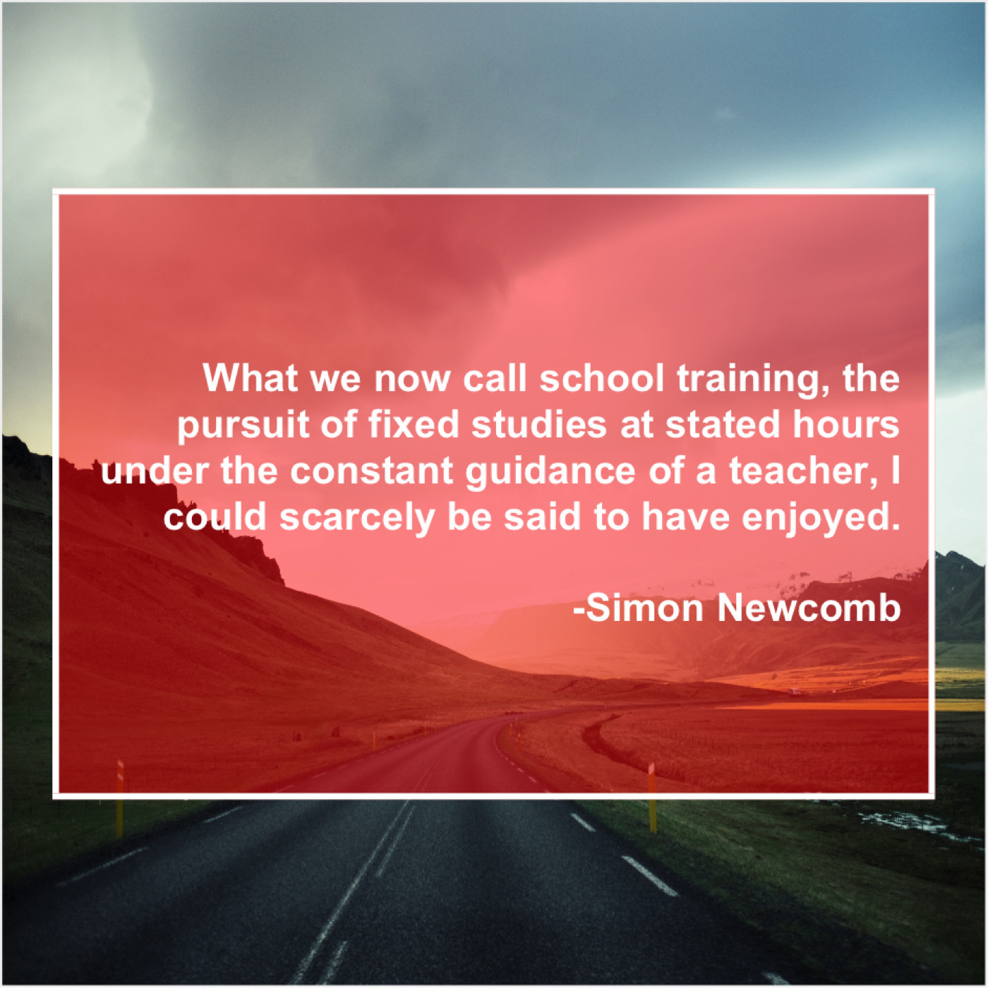 Simon Newcomb Simon Newcomb – What we now call school… February 11, 2019 admin “What we now call school training, the pursuit of fixed studies at stated hours under the constant guidance of a teacher, I could scarcely be said to have enjoyed.”-Simon Newcomb