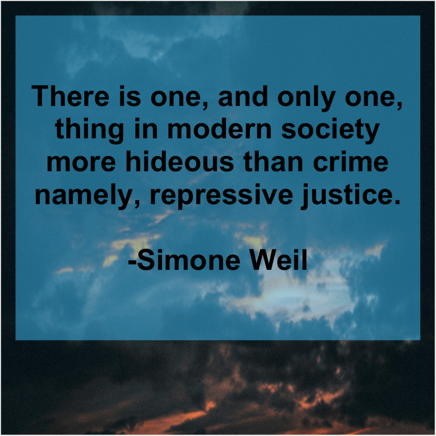 Simone Weil Simone Weil – There is one, and only… July 9, 2019 admin “There is one, and only one, thing in modern society more hideous than crime namely, repressive justice.”-Simone Weil