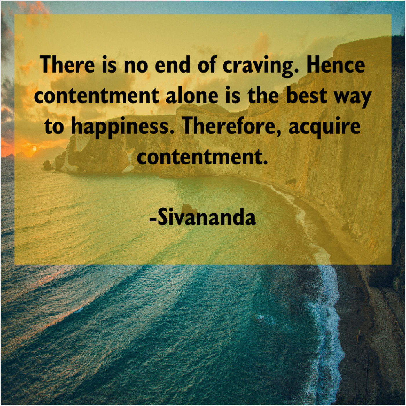 Sivananda Sivananda – There is no end of… September 18, 2019 admin “There is no end of craving. Hence contentment alone is the best way to happiness. Therefore, acquire contentment.”-Sivananda
