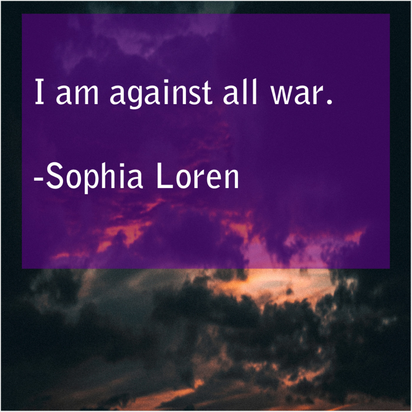 Sophia Loren Sophia Loren – I am against all war… May 29, 2019 admin “I am against all war.”-Sophia Loren