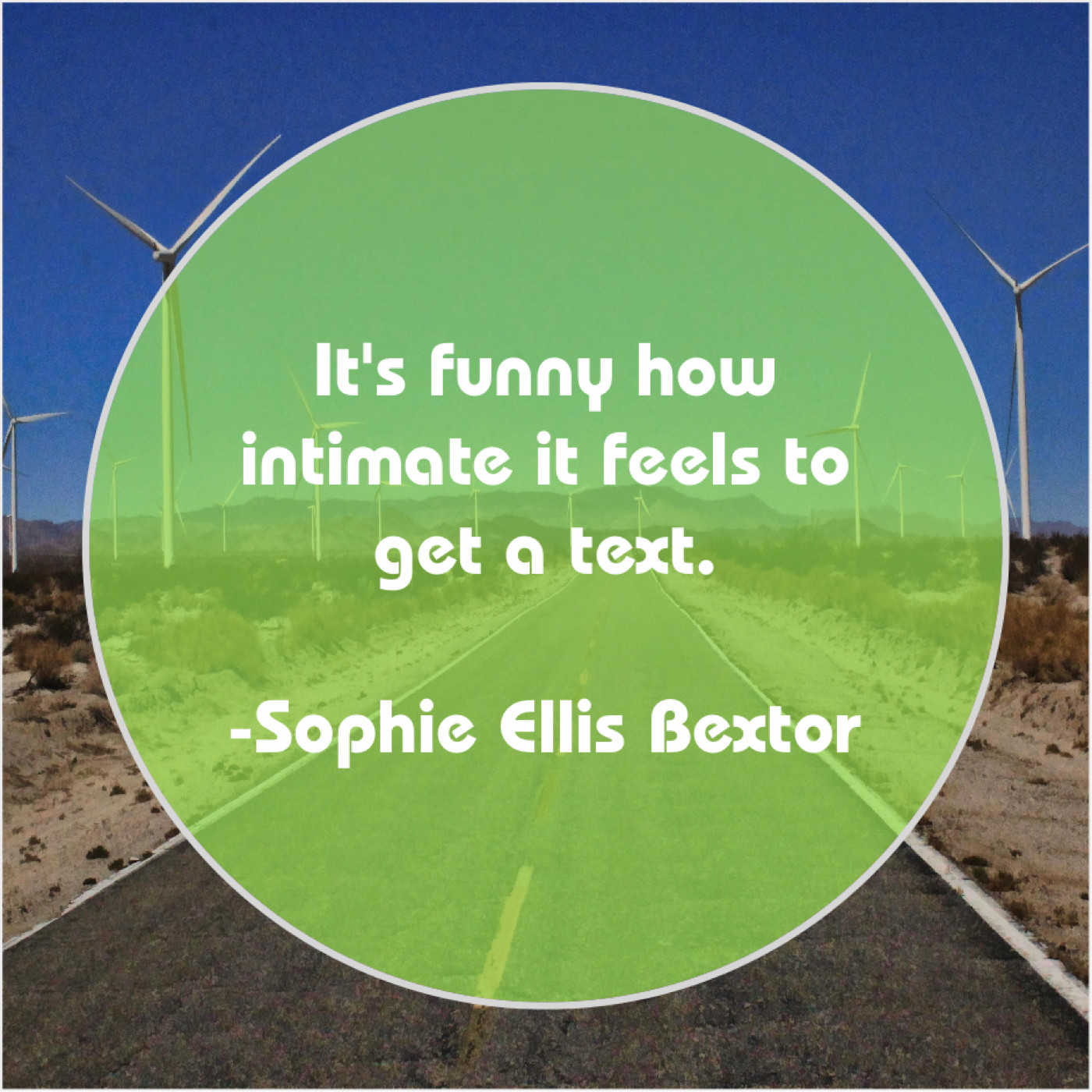 Sophie Ellis Bextor Sophie Ellis Bextor – It’s funny how intimate it… November 8, 2018 admin “It’s funny how intimate it feels to get a text.”-Sophie Ellis Bextor