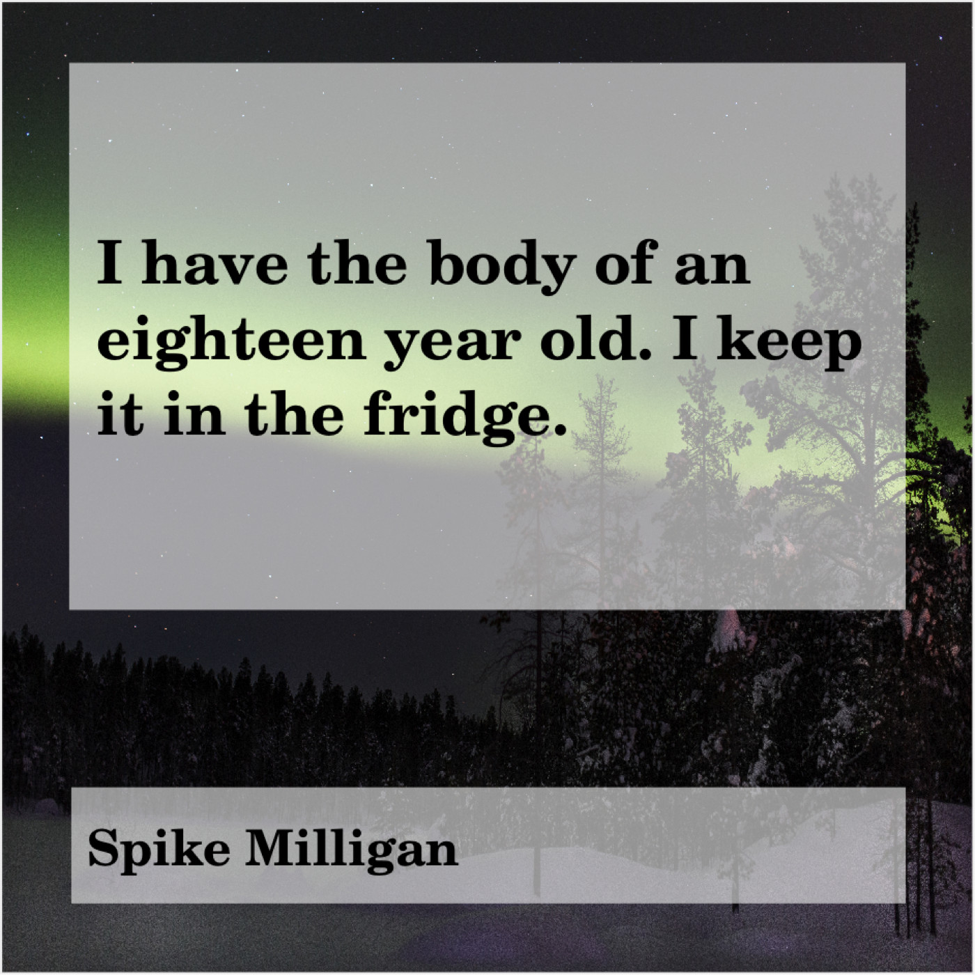 Spike Milligan Spike Milligan – I have the body of… October 6, 2019 admin “I have the body of an eighteen year old. I keep it in the fridge.”-Spike Milligan