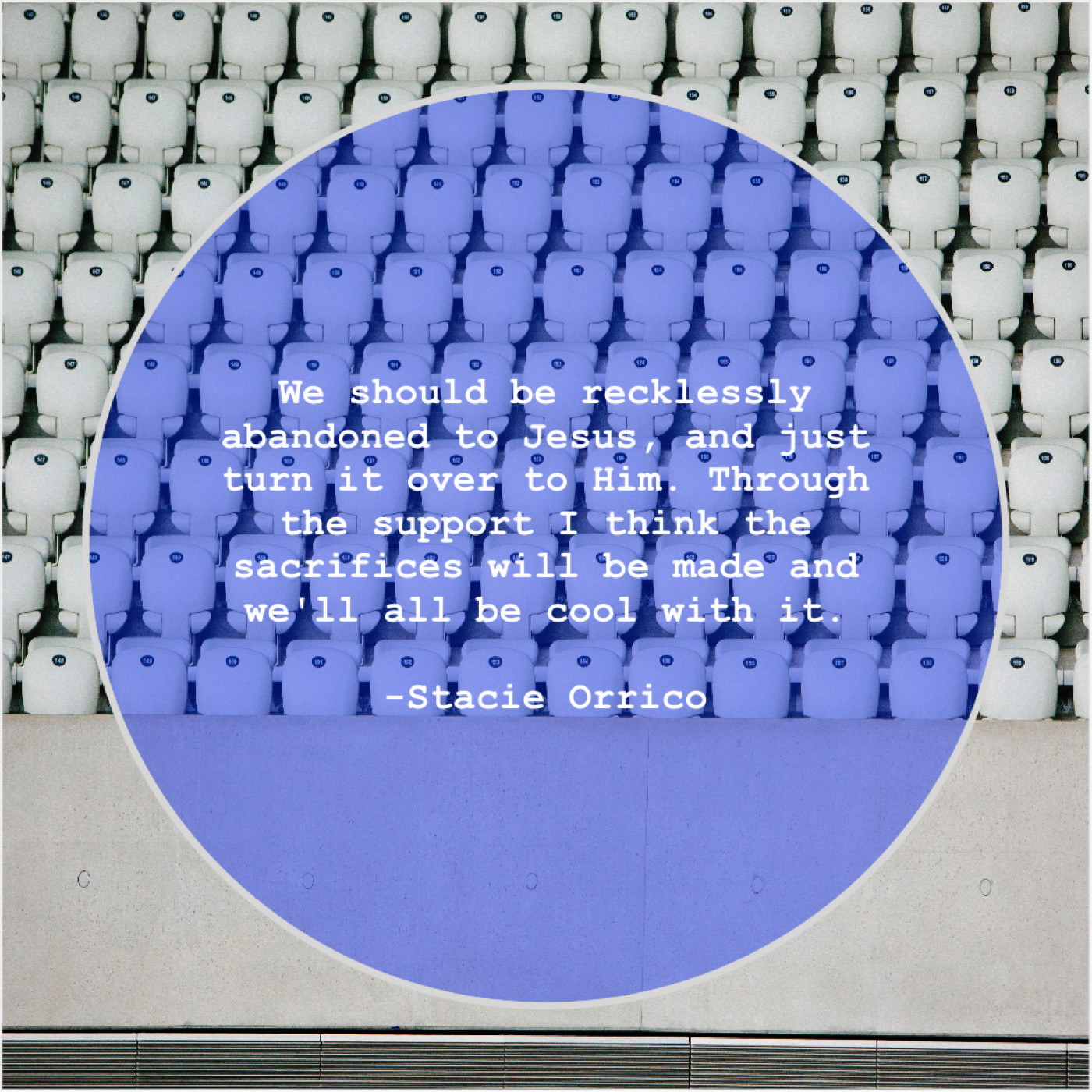 Stacie Orrico Stacie Orrico – We should be recklessly abandoned… July 30, 2019 admin “We should be recklessly abandoned to Jesus, and just turn it over to Him. Through the support I think the sacrifices will be made and we’ll all be cool with it.”-Stacie Orrico