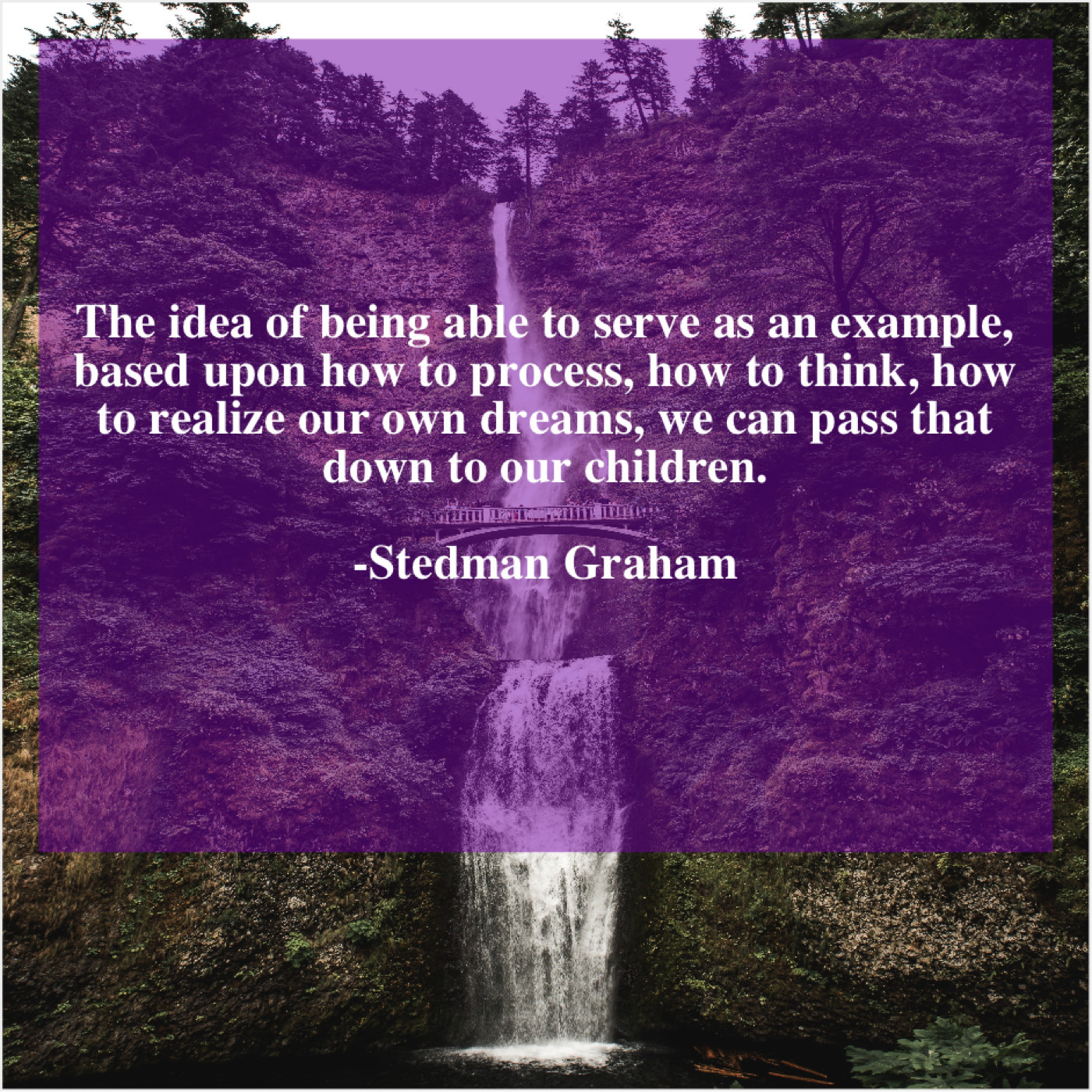 Stedman Graham Stedman Graham – The idea of being able… August 29, 2019 admin “The idea of being able to serve as an example, based upon how to process, how to think, how to realize our own dreams, we can pass that down to our children.”-Stedman Graham