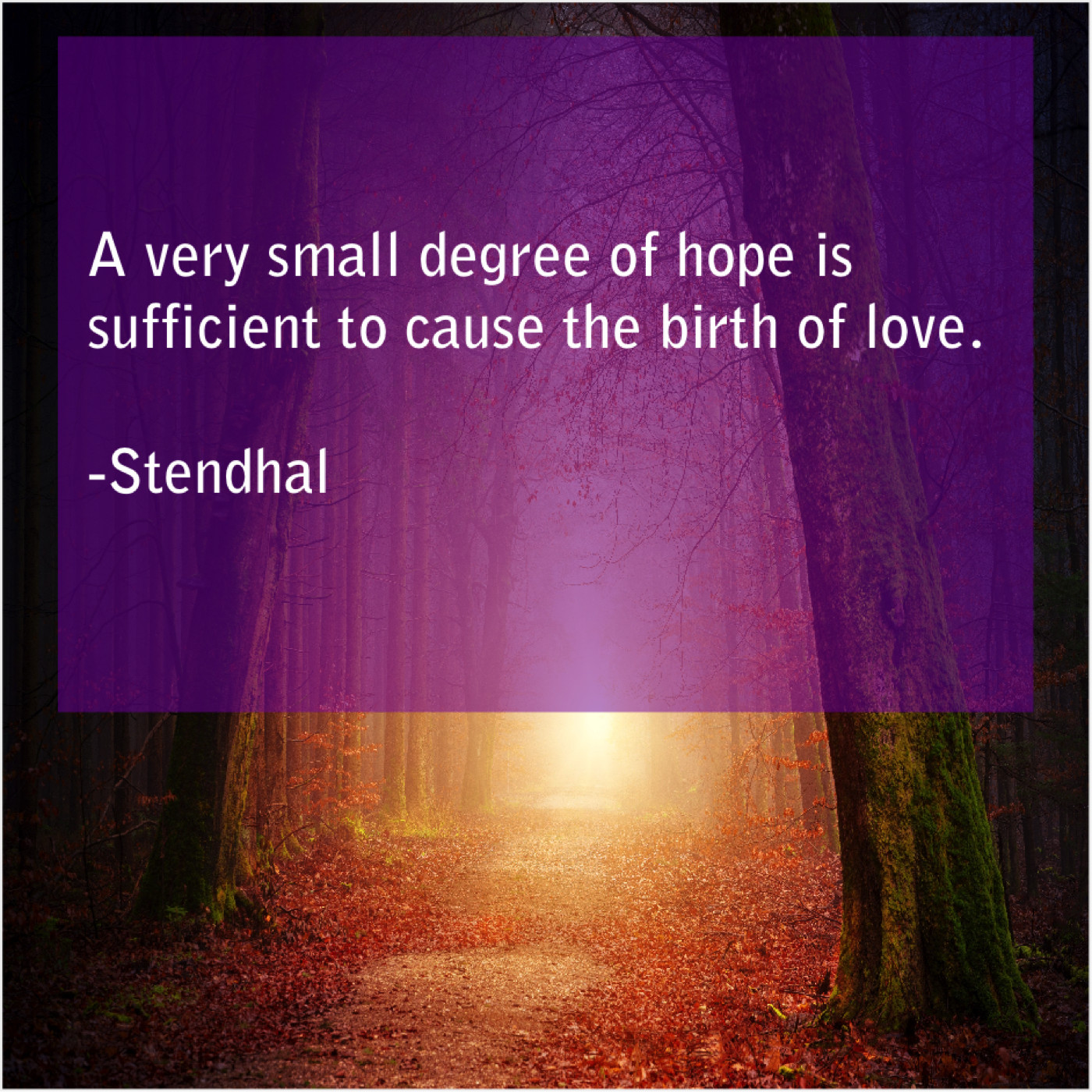 Stendhal Stendhal – A very small degree of… June 28, 2019 admin “A very small degree of hope is sufficient to cause the birth of love.”-Stendhal