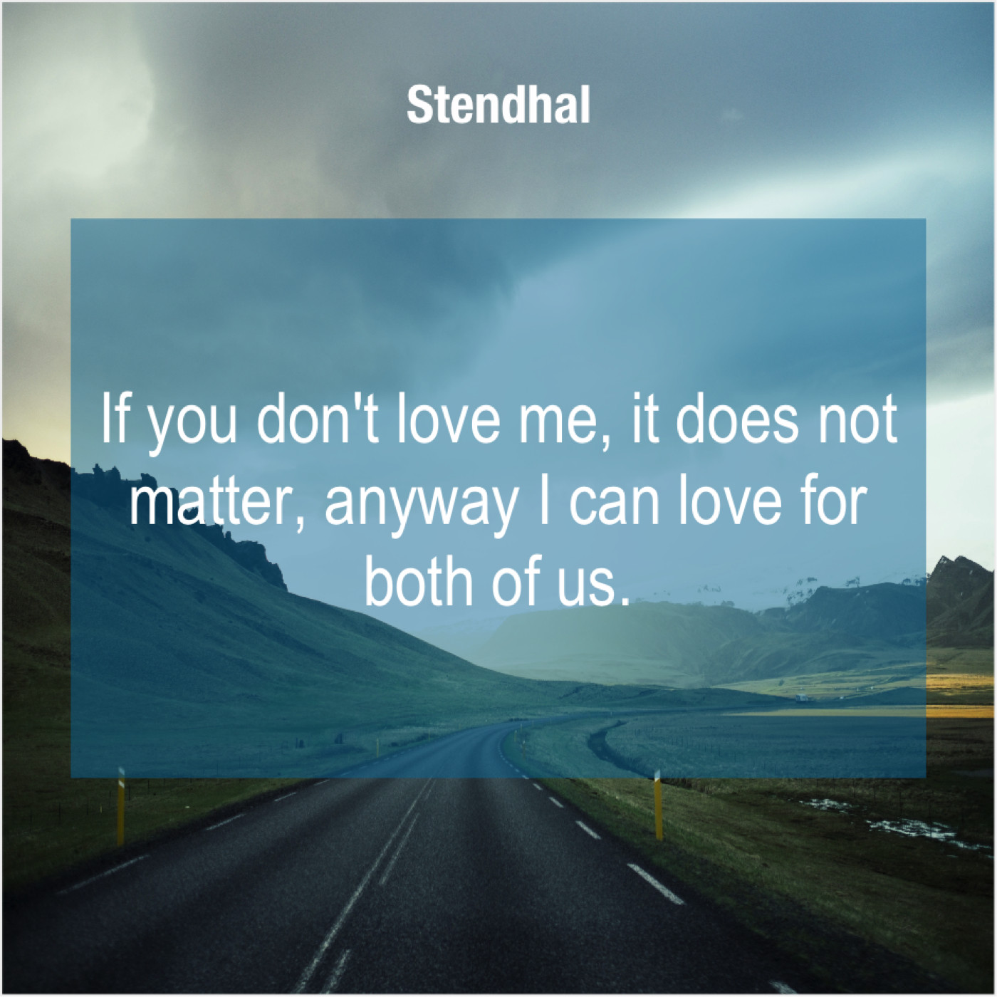 Stendhal Stendhal – If you don’t love me… September 10, 2019 admin “If you don’t love me, it does not matter, anyway I can love for both of us.”-Stendhal