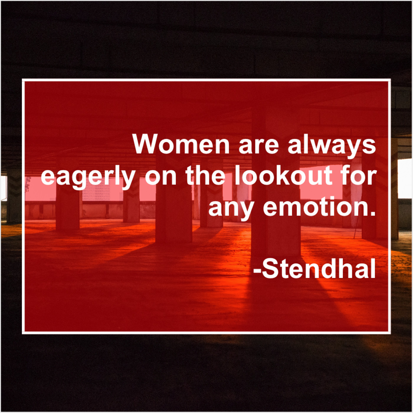 Stendhal Stendhal – Women are always eagerly on… August 2, 2019 admin “Women are always eagerly on the lookout for any emotion.”-Stendhal