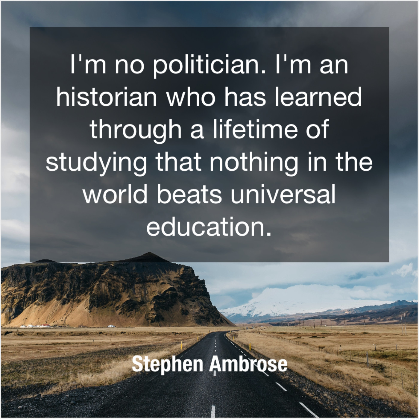 “I’m no politician. I’m an historian who has learned through a lifetime of studying that nothing in the world beats universal education.”