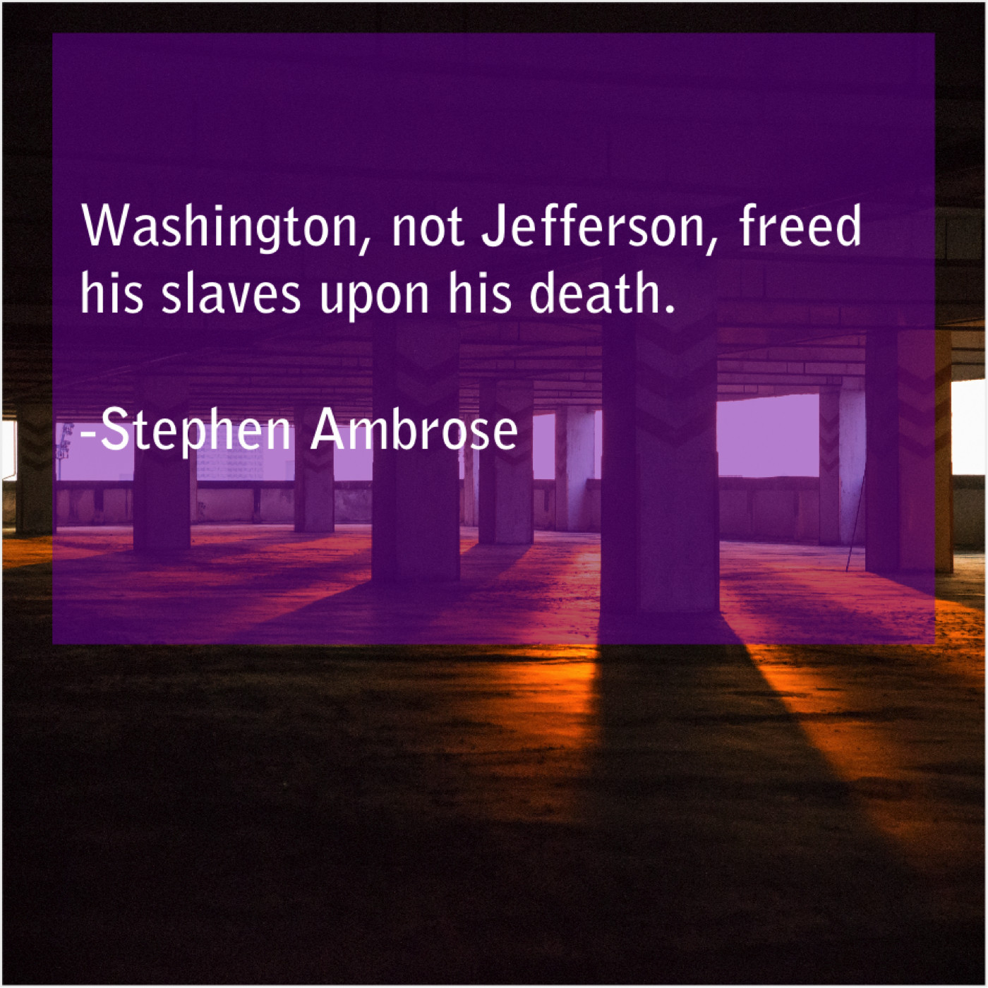 Stephen Ambrose Stephen Ambrose – Washington, not Jefferson, freed his… August 13, 2019 admin “Washington, not Jefferson, freed his slaves upon his death.”-Stephen Ambrose