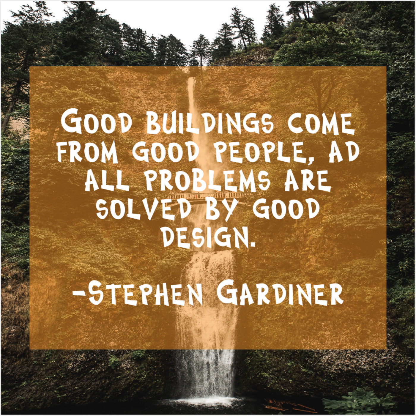 Stephen Gardiner Stephen Gardiner – Good buildings come from good… August 22, 2019 admin “Good buildings come from good people, ad all problems are solved by good design.”-Stephen Gardiner