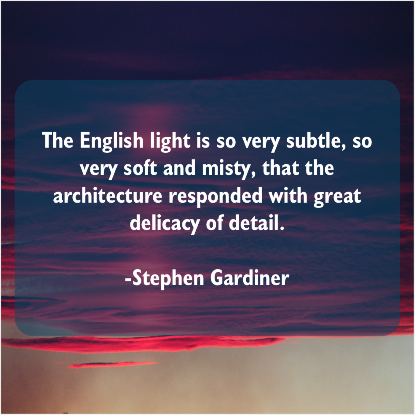 Stephen Gardiner Stephen Gardiner – The English light is so… March 1, 2019 admin “The English light is so very subtle, so very soft and misty, that the architecture responded with great delicacy of detail.”-Stephen Gardiner