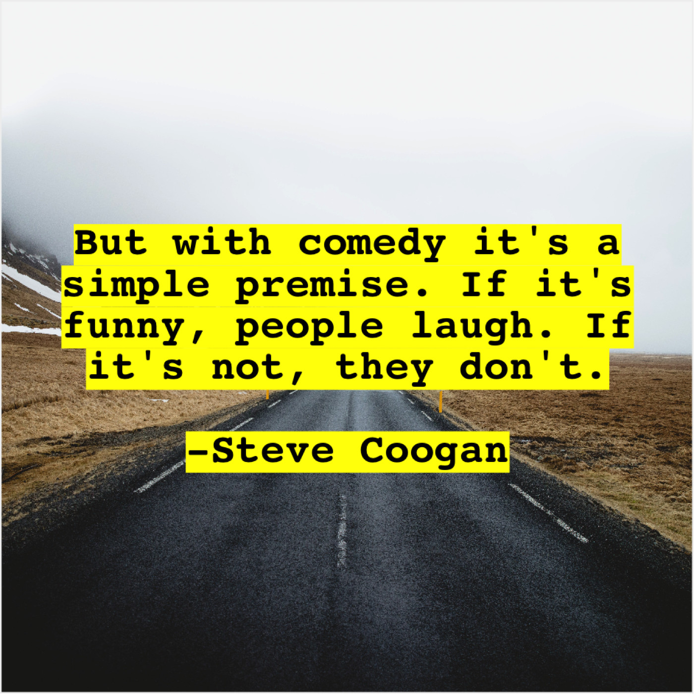 Steve Coogan Steve Coogan – But with comedy it’s a… September 4, 2019 admin “But with comedy it’s a simple premise. If it’s funny, people laugh. If it’s not, they don’t.”-Steve Coogan