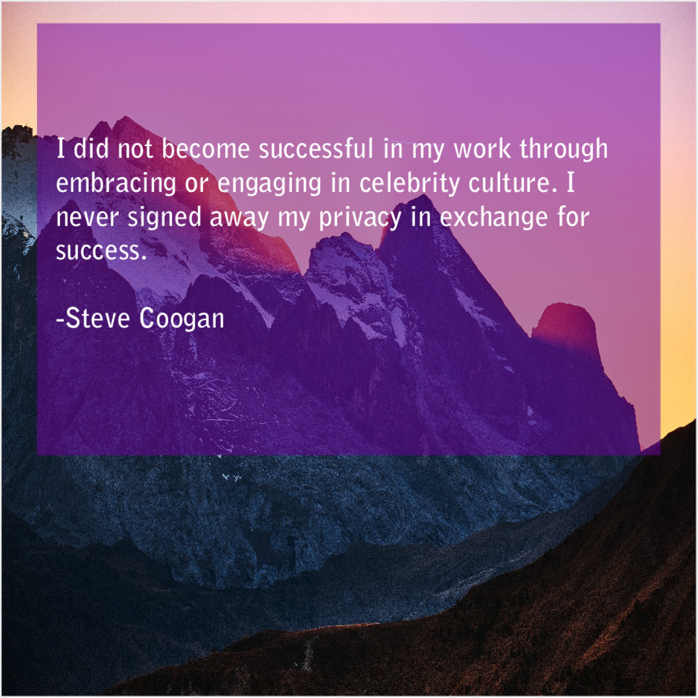 Steve Coogan Steve Coogan – I did not become successful… May 11, 2019 admin “I did not become successful in my work through embracing or engaging in celebrity culture. I never signed away my privacy in exchange for success.”-Steve Coogan